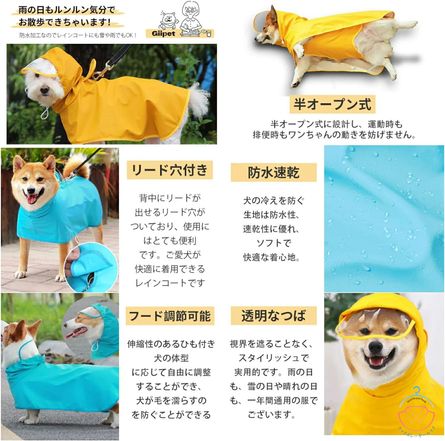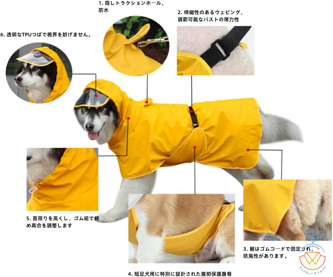 犬用レインコート 2WAYペット用レイ キッチン用品 食器 調理器具 通販 イエロー ブルー ウサギ 恐竜 イエロー【反射機能】 M L XL 2XL 3XL 4XL 5XL 6XL 7XL 8XL 9XL