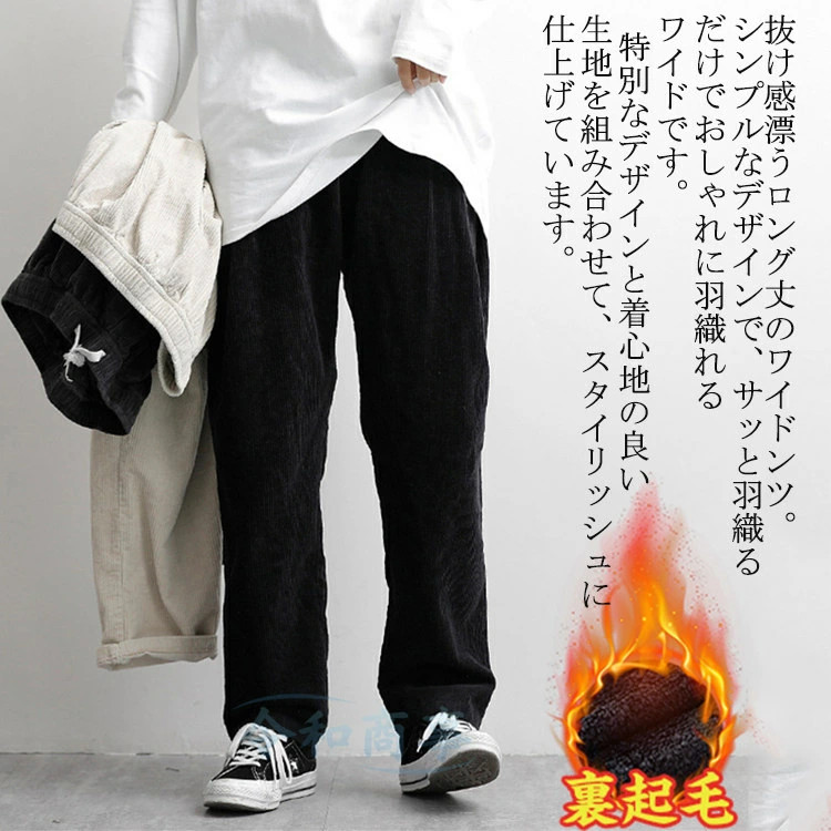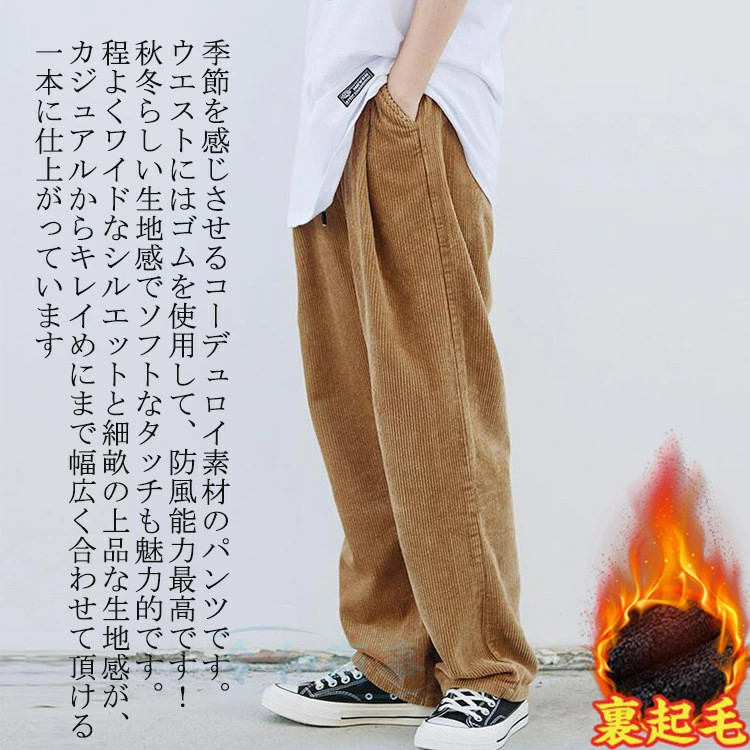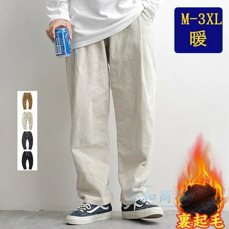 ワイドパンツ メンズ 裏起毛 コーデュ ズボン パンツ 続々登場 アイボリー 黒 ダークグレー ブラウン M L XL 2XL 3XL