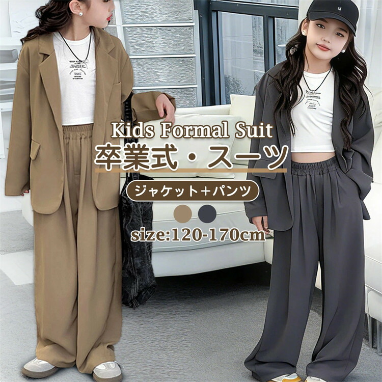 卒業式 女の子 キッズスーツ フォーマ レディースファッション 通販 グレー カーキー 120cm 130cm 140cm 150cm 160cm 170cm