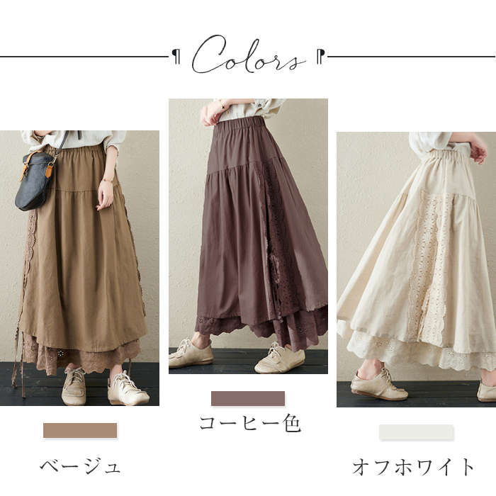 スカート ペチコート レース ロング ボトムス スカート 通販 オフホワイト ベージュ コーヒー色 M L XL 2XL