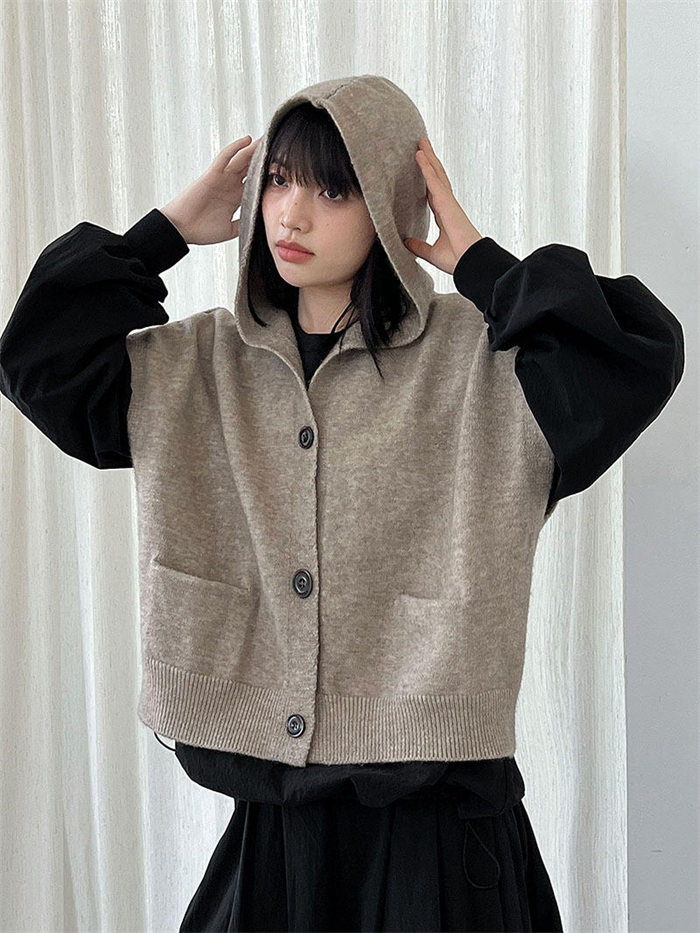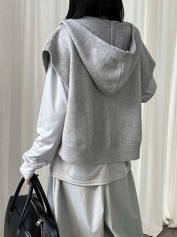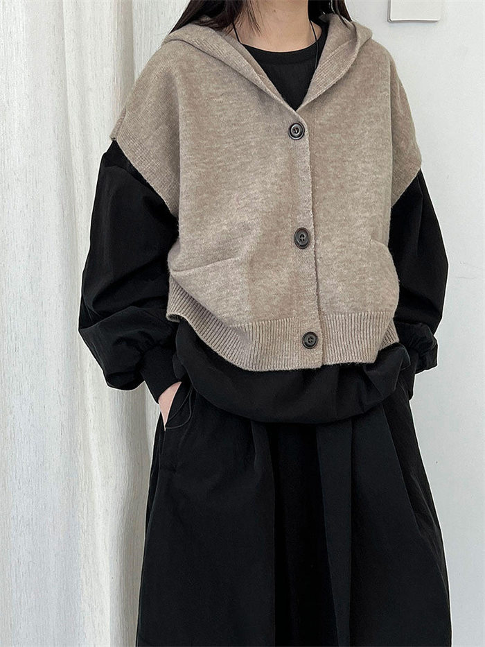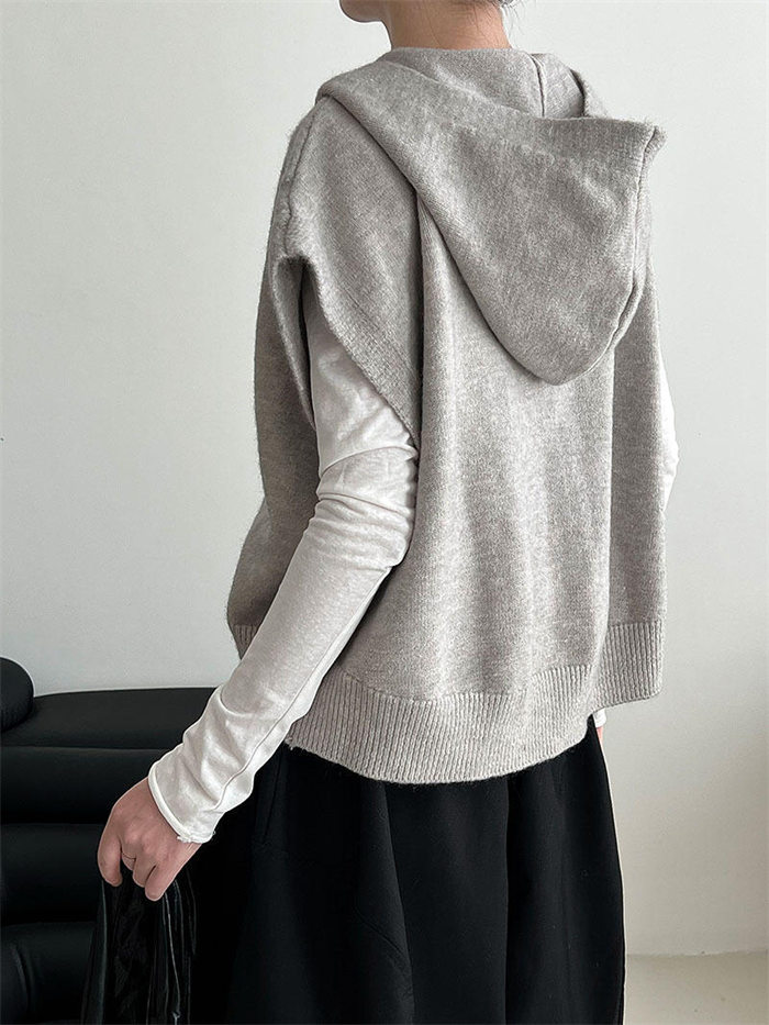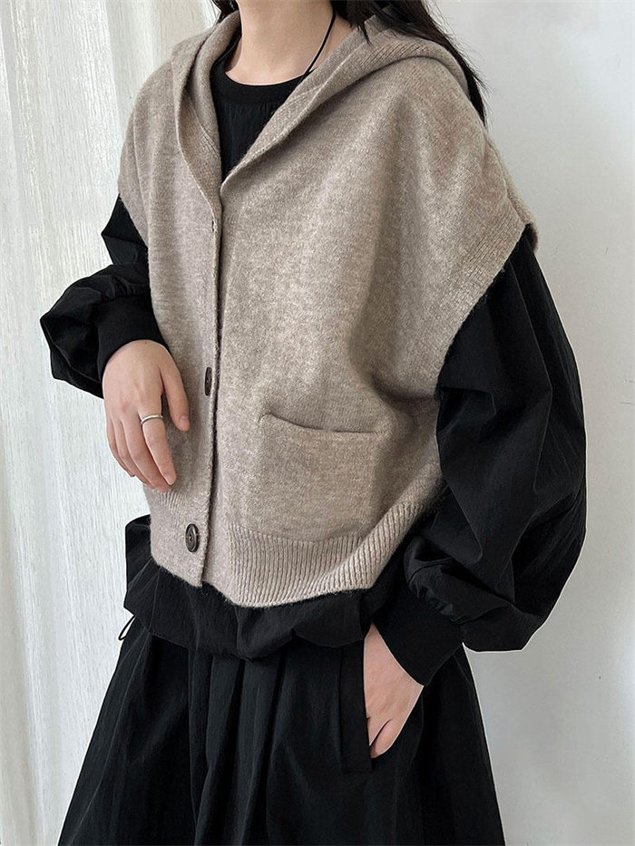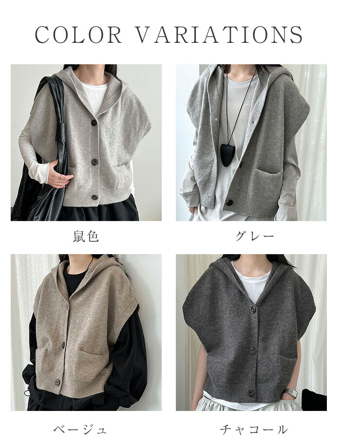 ニットベスト レディース フード付き レディースファッション 豊富 鼠色 グレー ベージュ チャコール