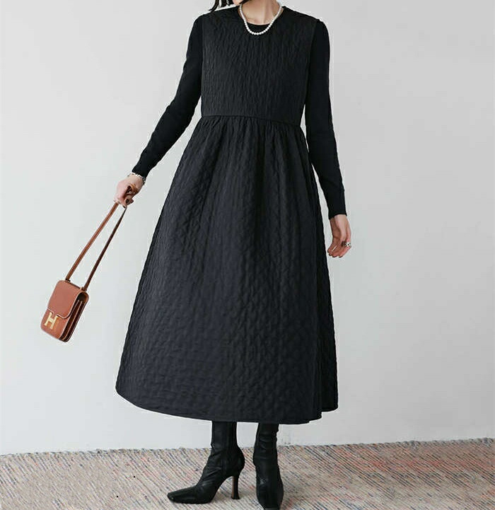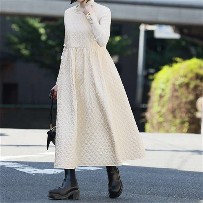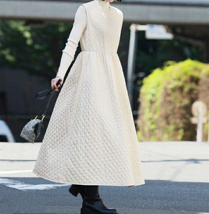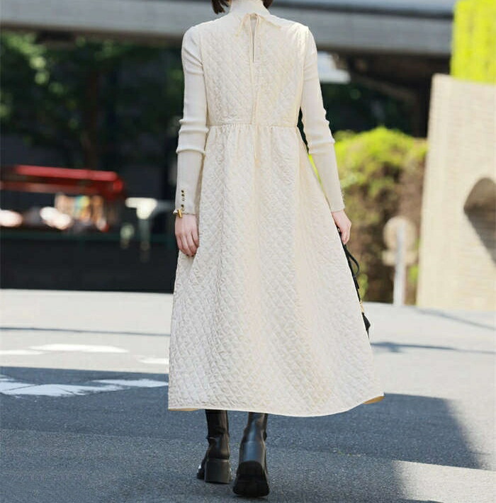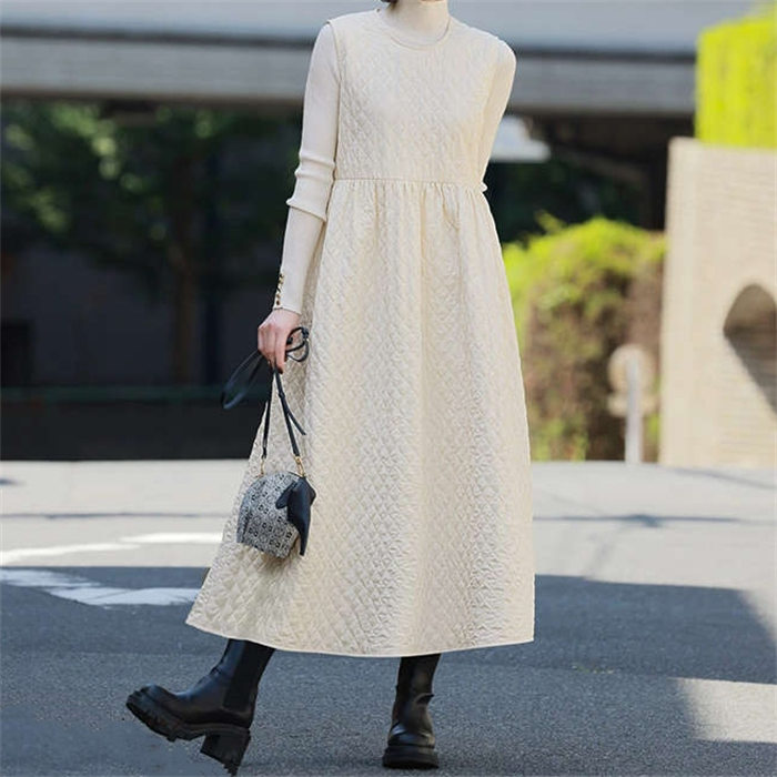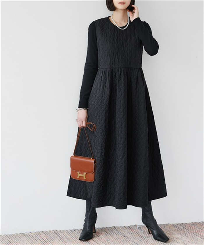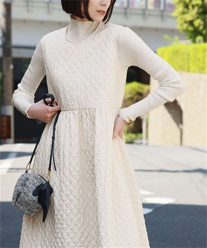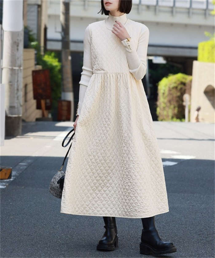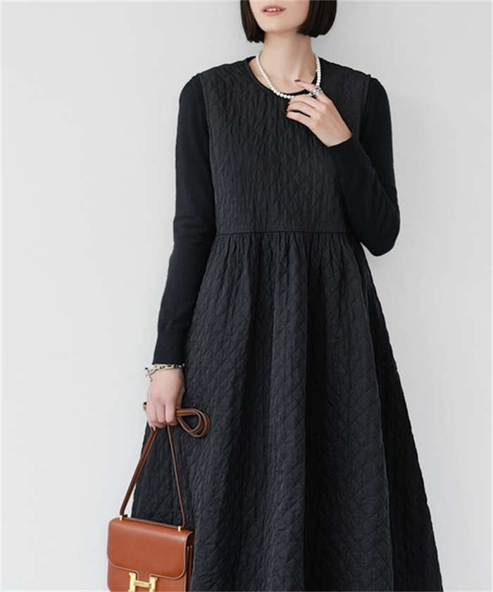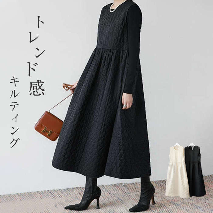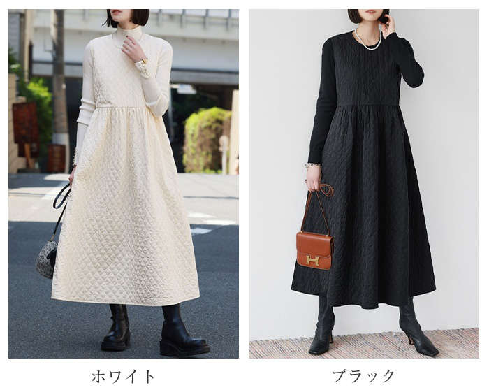 ワンピース レディース 秋冬 キルティ レディースファッション 超目玉商品 ブラック ホワイト