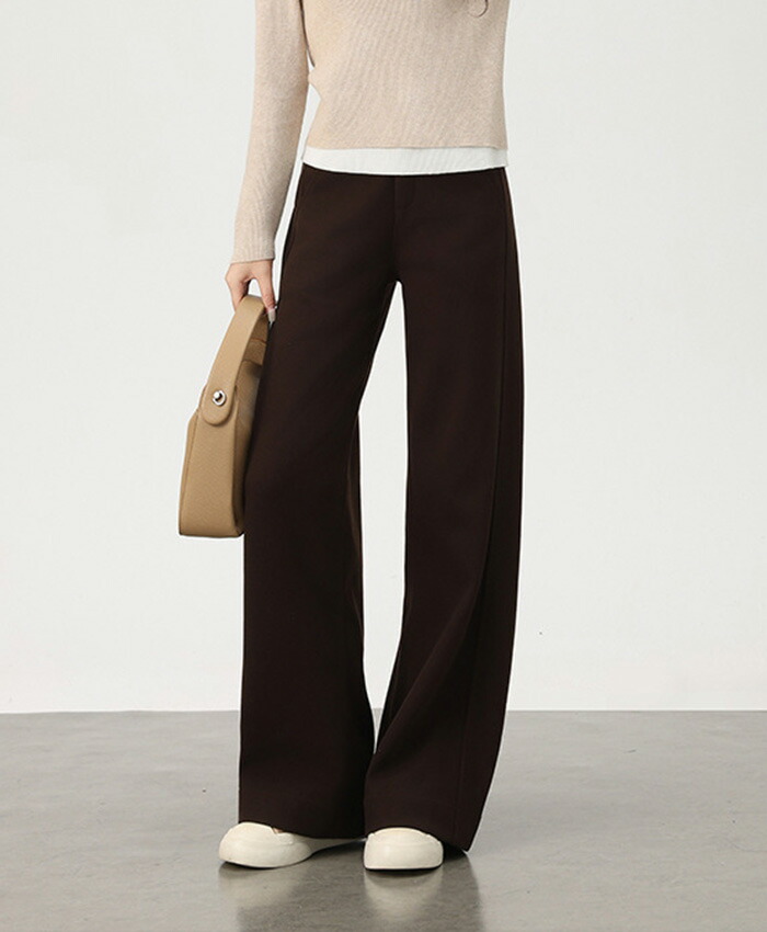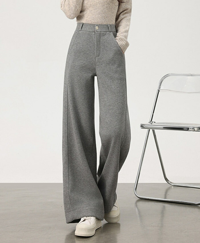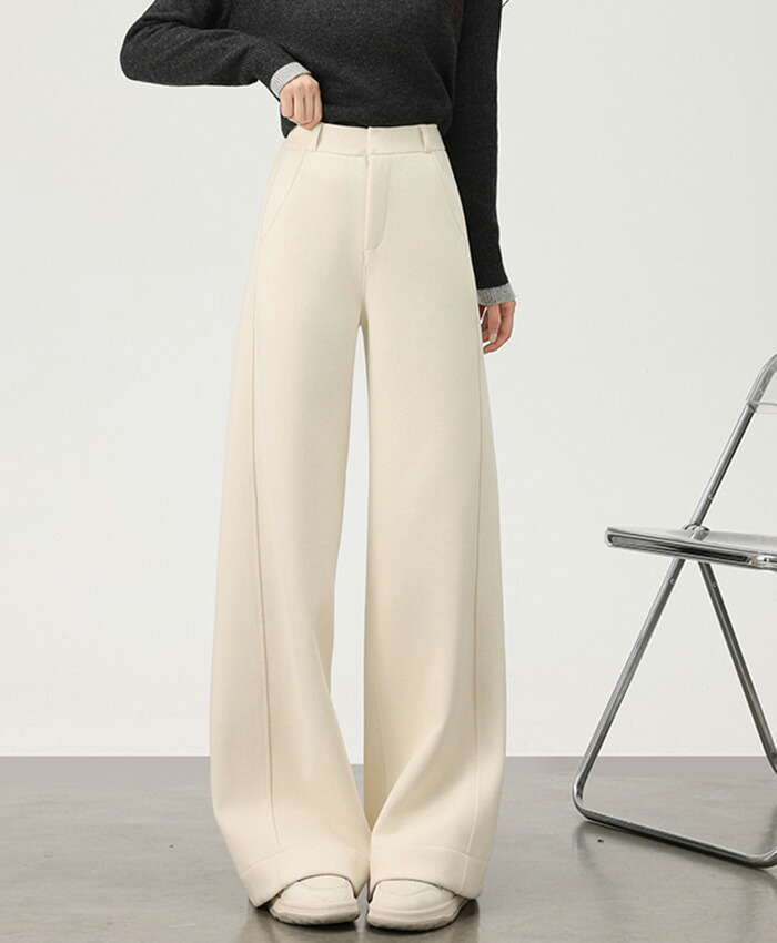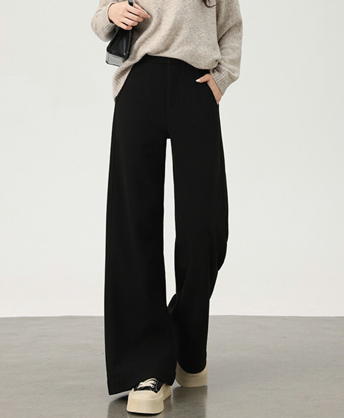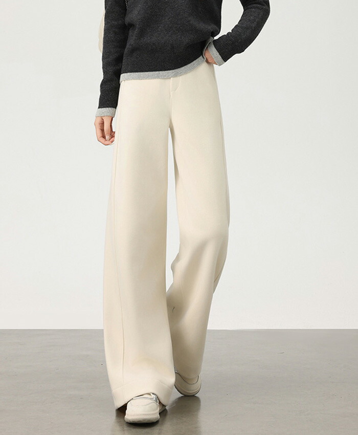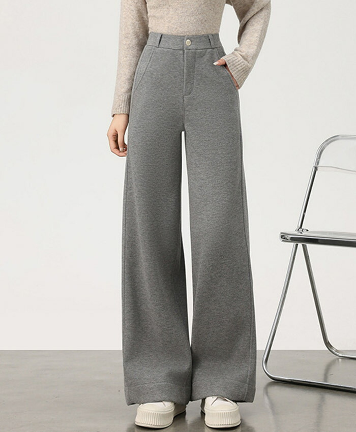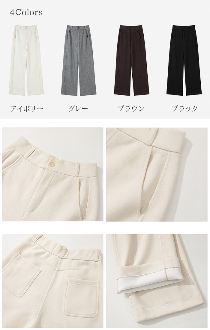裏起毛 ワイドパンツ パンツ レディー ボトムス パンツ 超目玉商品 通常 丈長め アイボリー ブラウン グレー ブラック