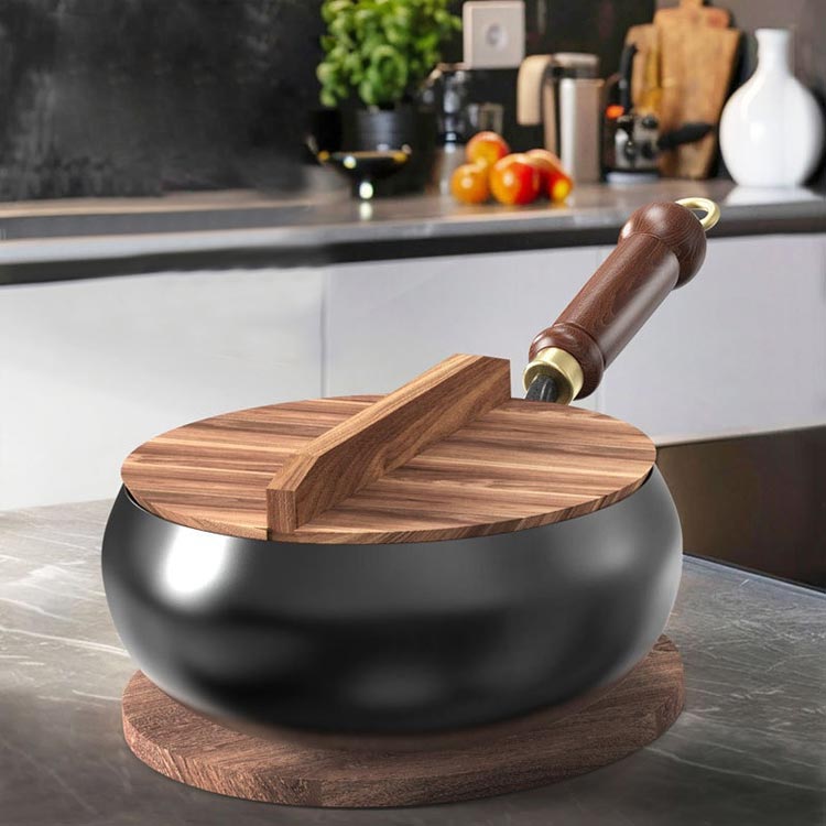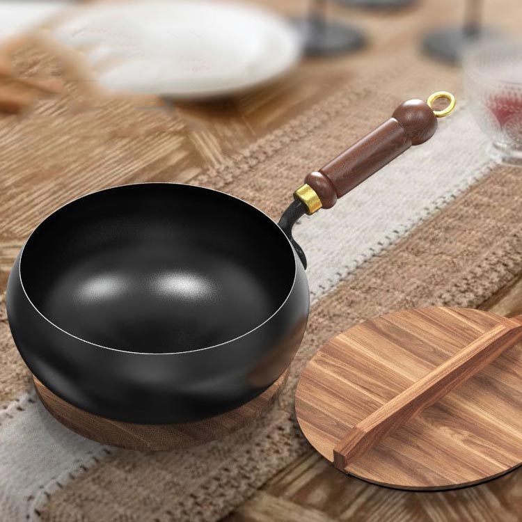 中華鍋 鉄鍋 ガス代節約 鉄製中華鍋 鍋+ガラス蓋 鍋+木製蓋