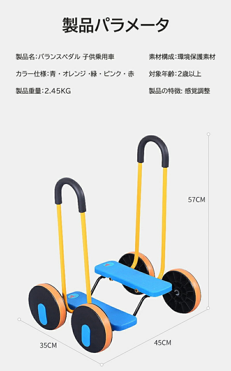 バランスペダル 子供乗用車 室内室外 青 オレンジ 緑 ピンク 赤