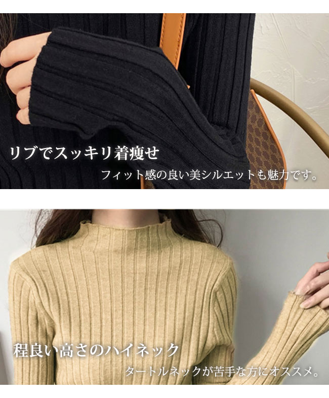 ニット レディース 秋冬 暖かい 防寒 トップス Tシャツ カットソー 通販 ブラック ホワイト グレー ベージュ カーキ ブルー