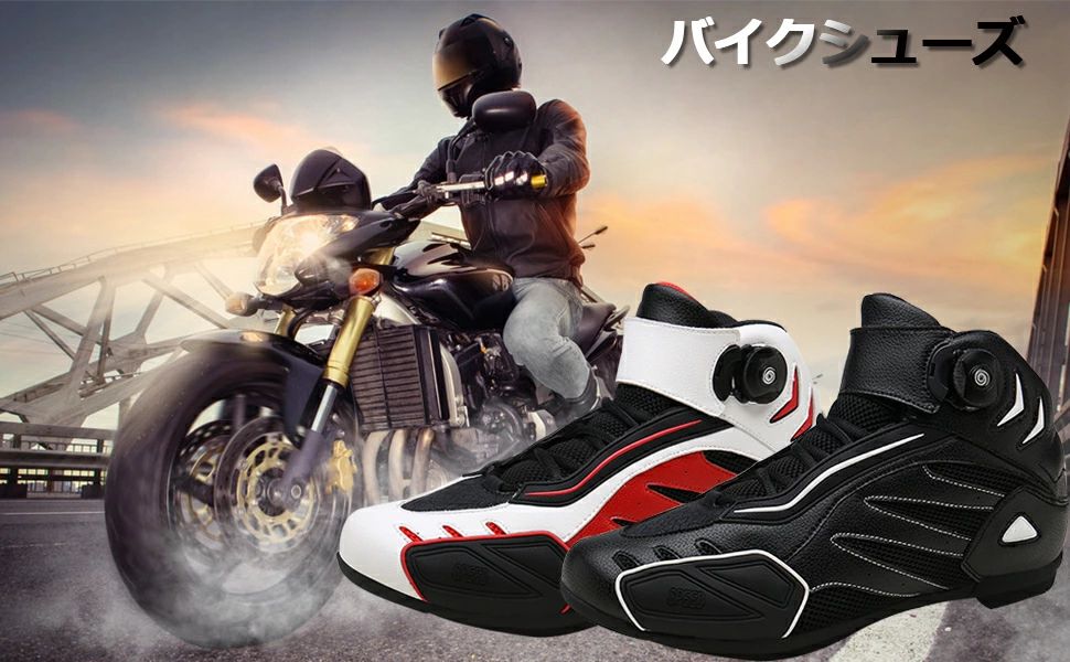 バイク用靴 プロテクション有り 強化防 ブラック レッド 23.0cm 23.5cm 24.0cm 24.5cm 25.0cm 25.5cm 26.0cm 26.5cm 27.0cm 27.5cm 28.0cm 28.5cm