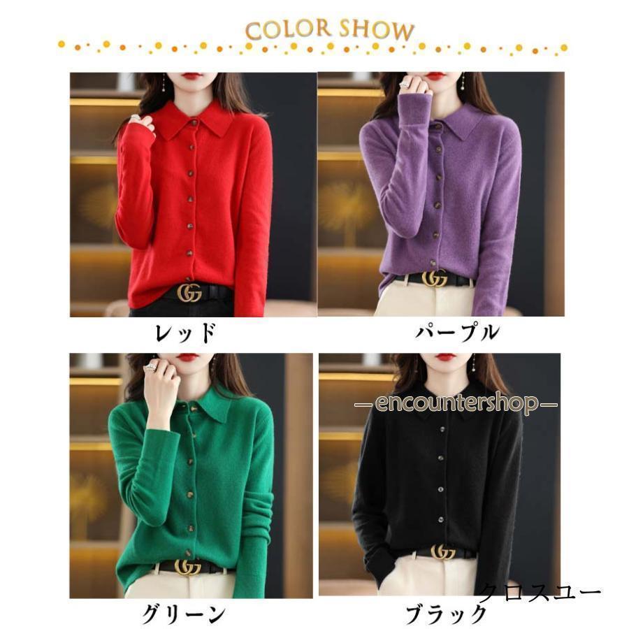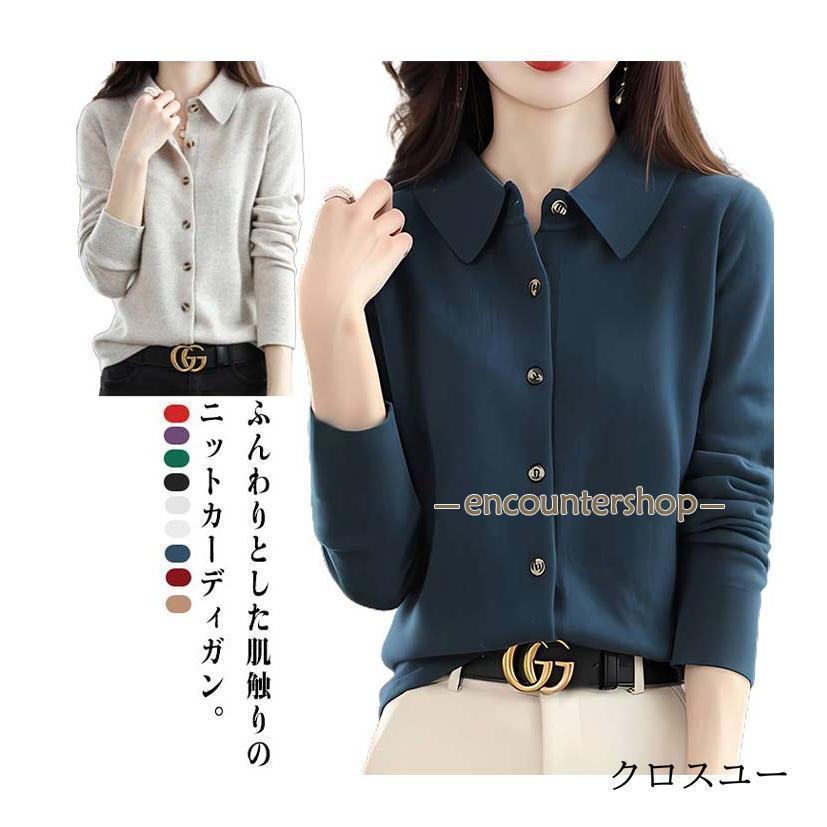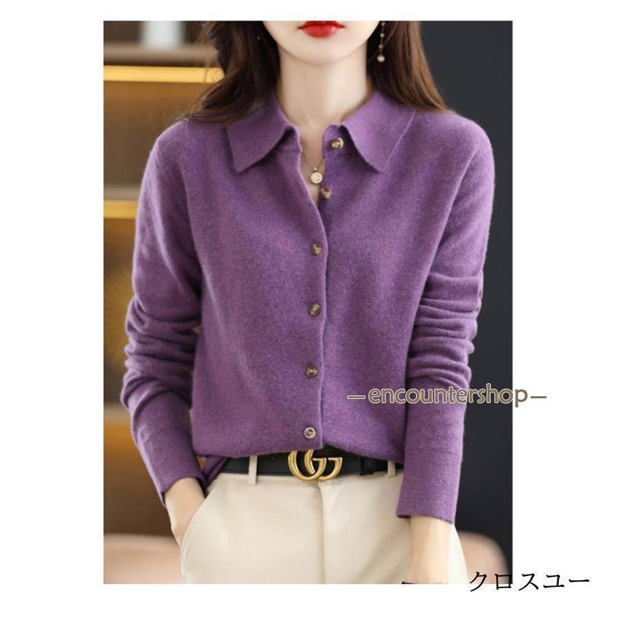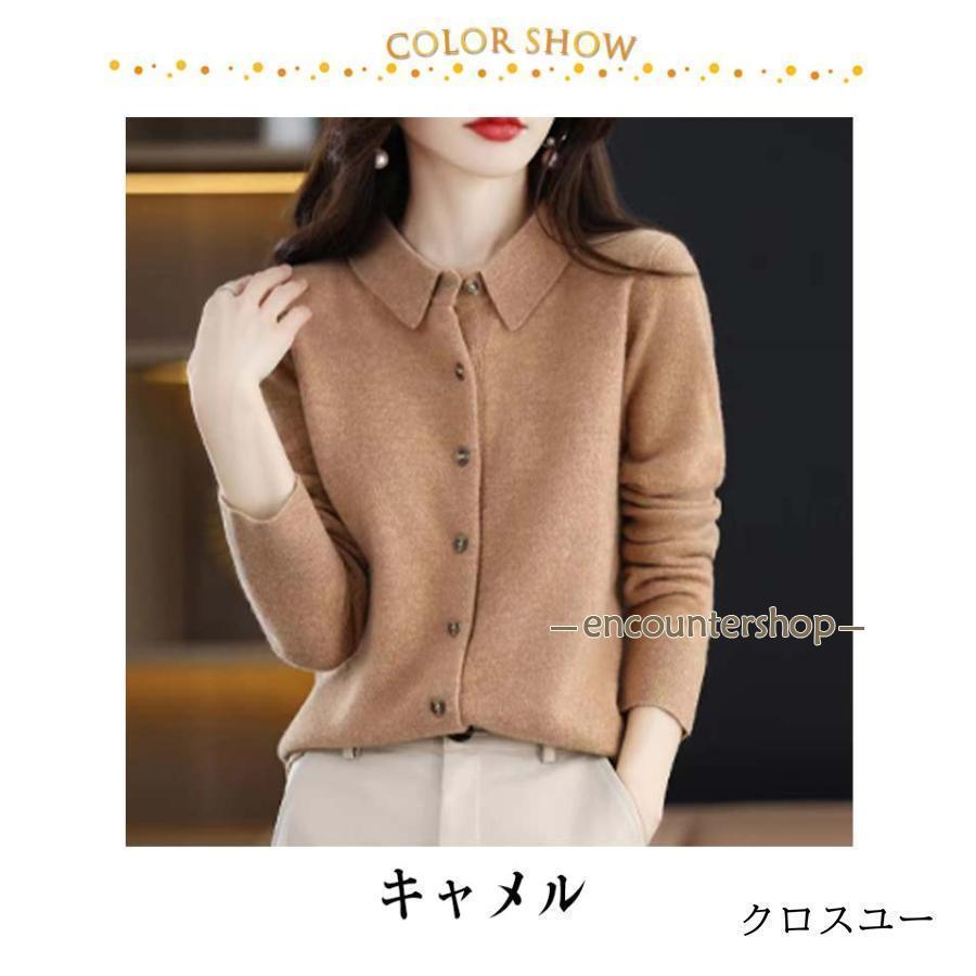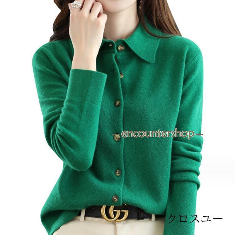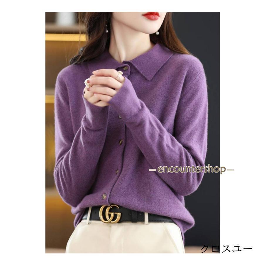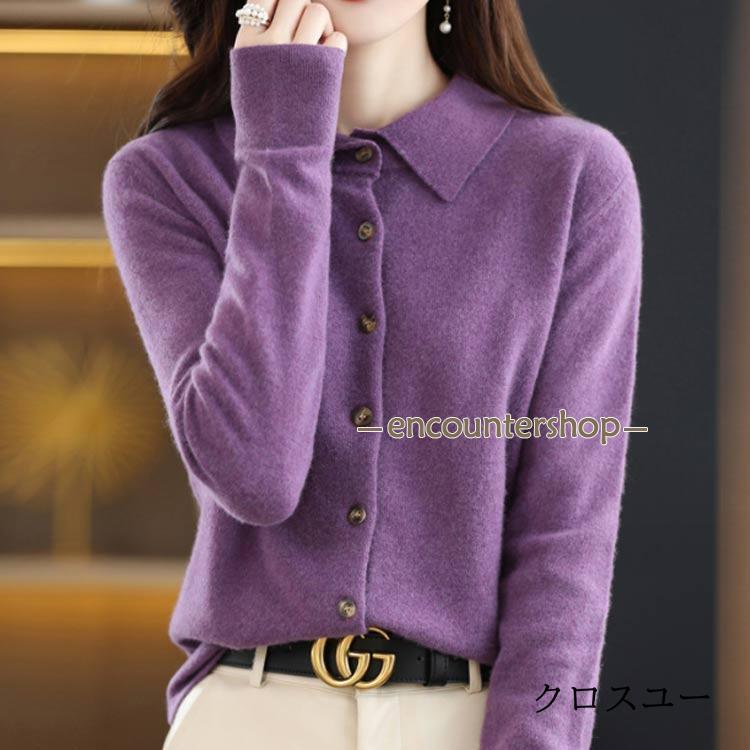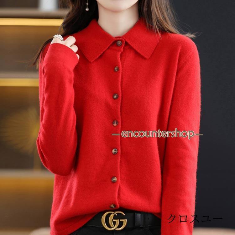 襟付き ニット カーディガン レディー レディースファッション 豊富 レッド パープル グリーン ブラック ベージュ オフホワイト ネイビー ワインレッド キャメル S M L XL 2XL