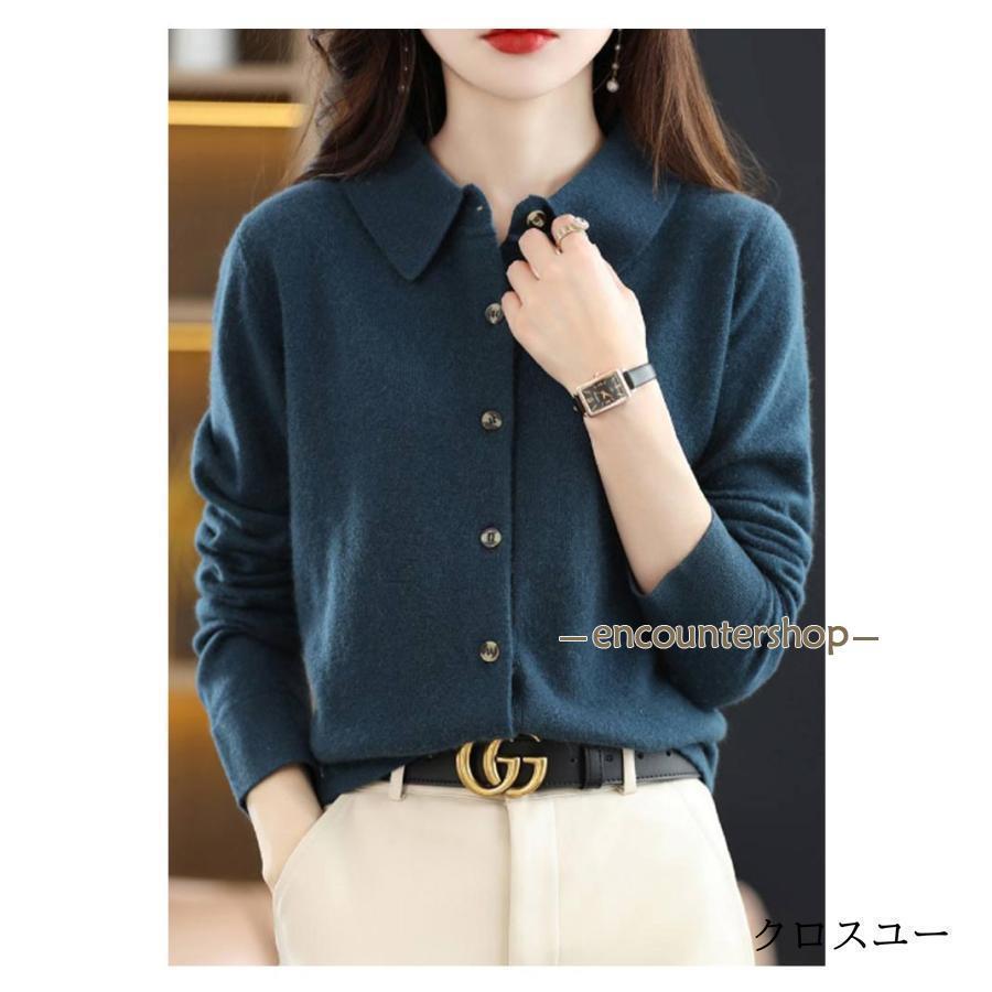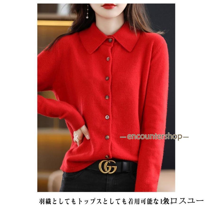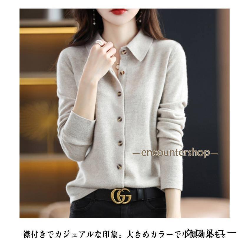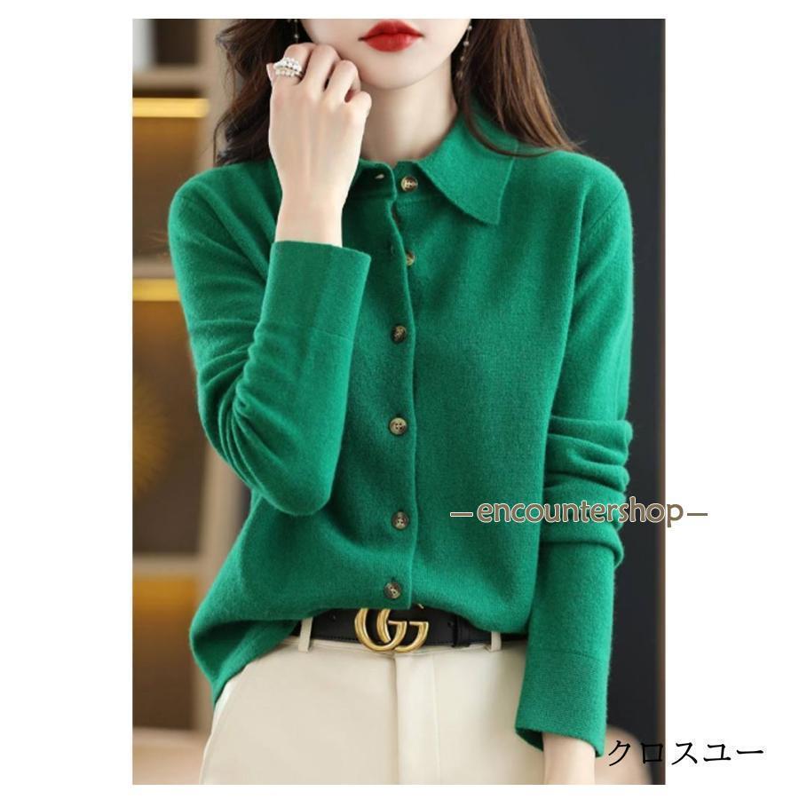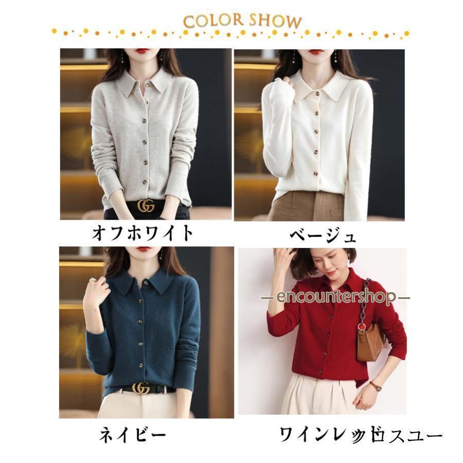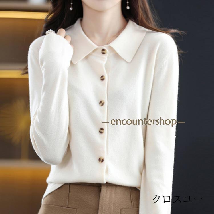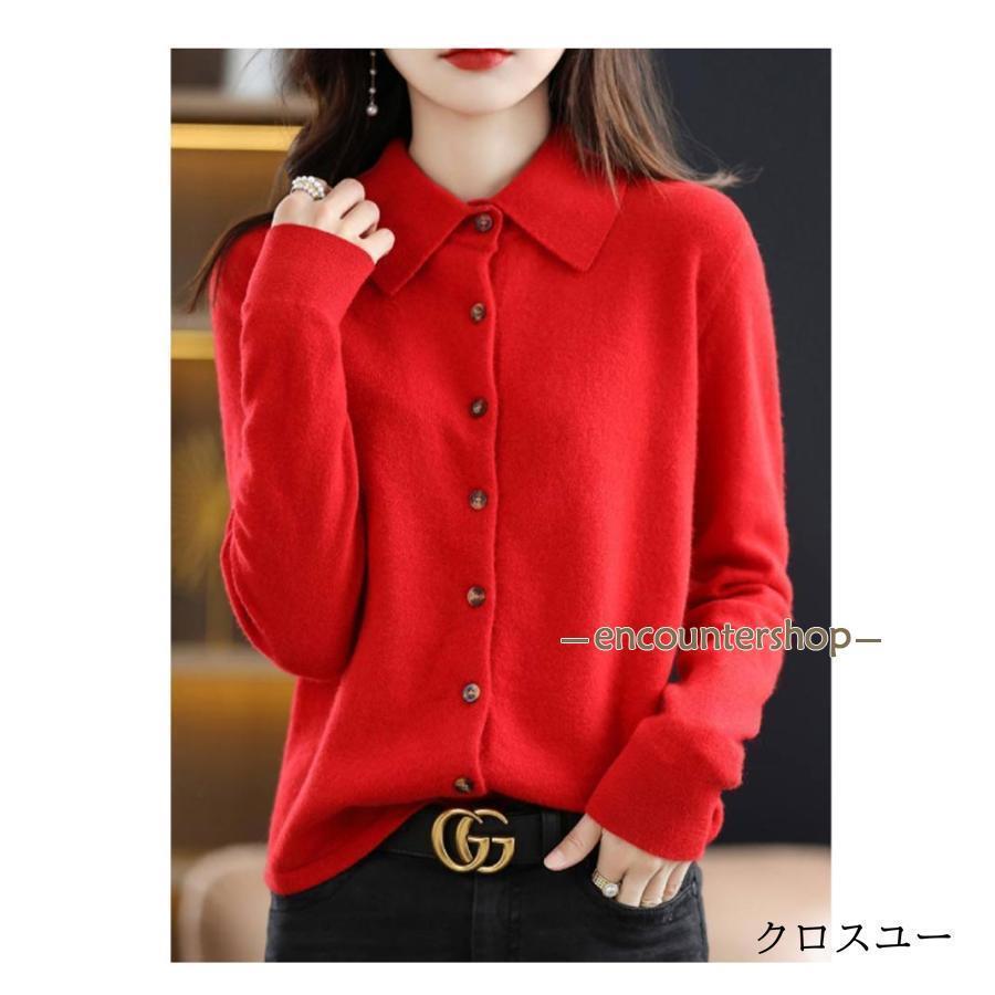 襟付き ニット カーディガン レディー レディースファッション 豊富 レッド パープル グリーン ブラック ベージュ オフホワイト ネイビー ワインレッド キャメル S M L XL 2XL