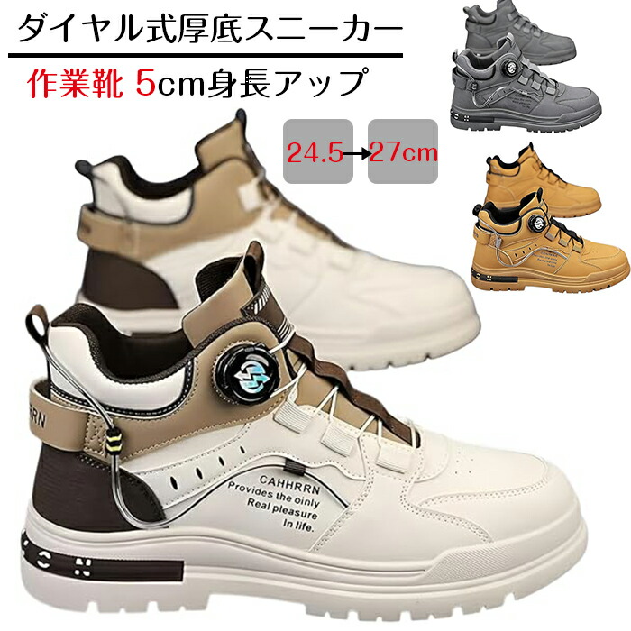 ダイヤル式厚底スニーカー メンズ回転バ レディース靴 スニーカー 特集 ベージュ イエロー グレー 39(内寸24.5cm) 40(内寸25cm) 41(内寸25.5cm) 42(内寸26cm) 43(内寸26.5cm) 44(内寸27cm)
