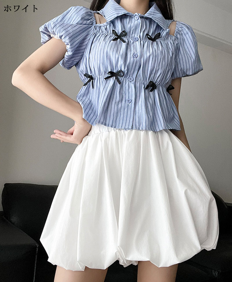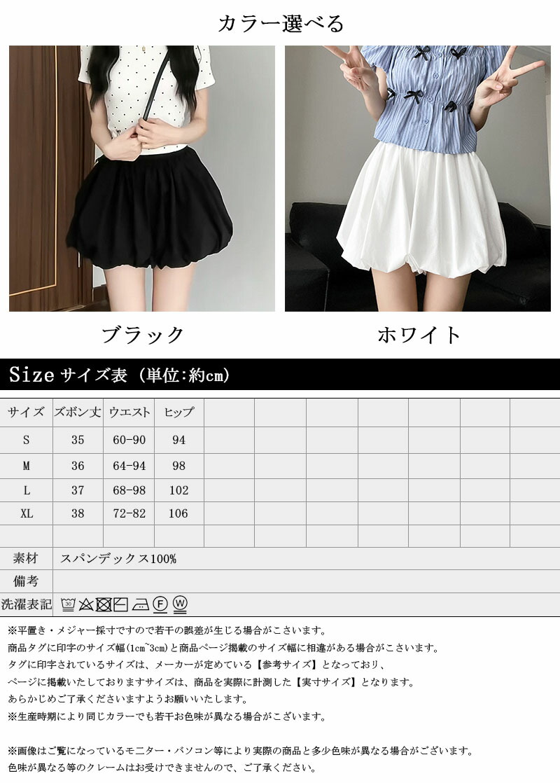 スカート ミニスカート バルーンスカー レディースファッション 特集 ホワイト ブラック S M L XL