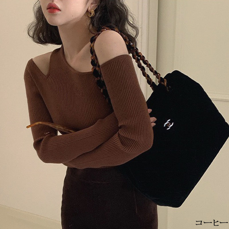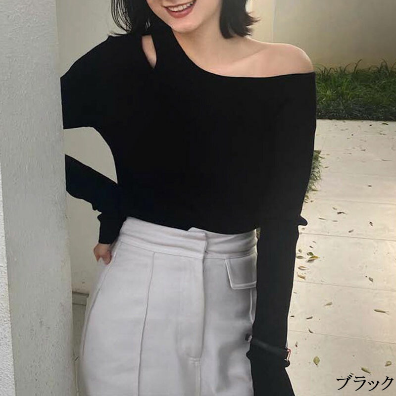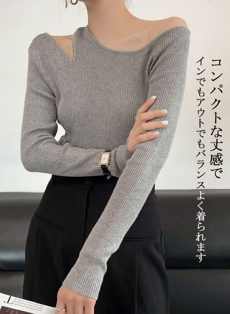 トップス リブニット アシメネック ニ レディースファッション 豊富な品揃え ブラック グレー コーヒー