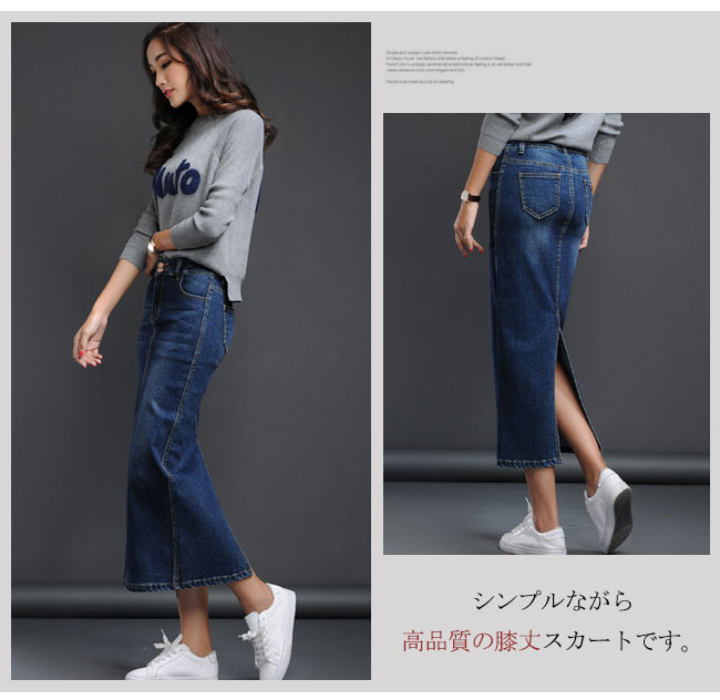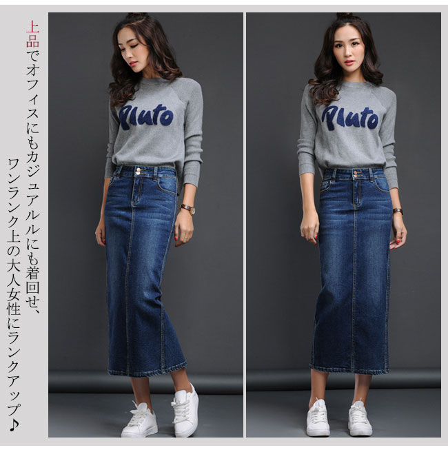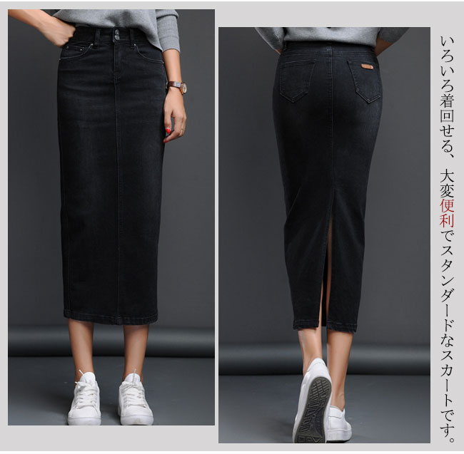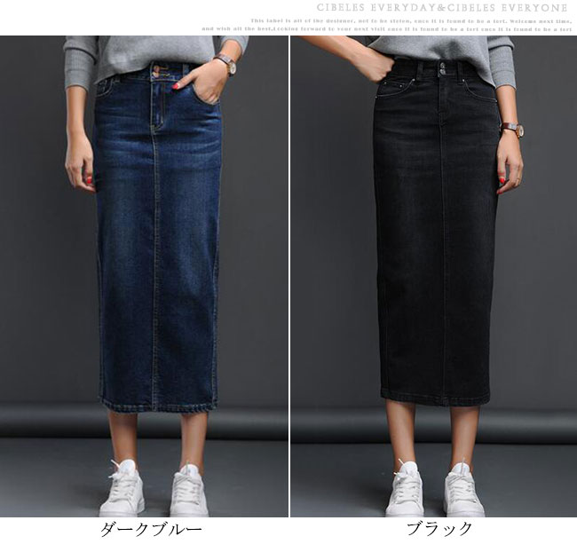 デニムスカート ロング レディース ロ ダークブルー ブラック S M L XL 2XL