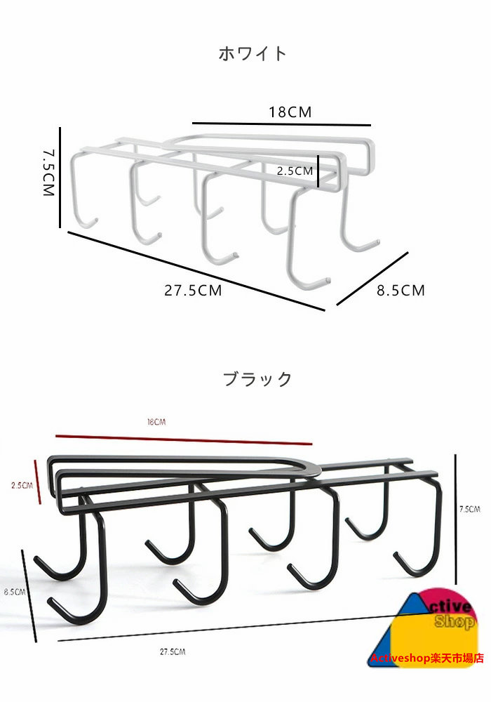 キッチンフック カップハンガー 2点セ キッチン用品 食器 調理器具 続々登場 ホワイト ブラック