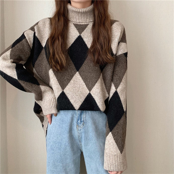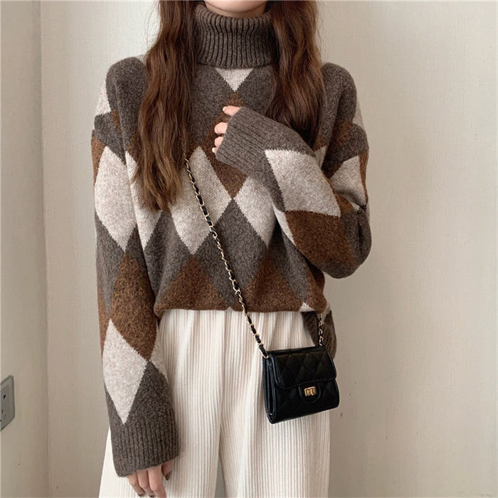 アーガイル柄 セーター ニット ニット トップス ニット セーター セーター 豊富な品揃え ベージュ ブラック コーヒー色