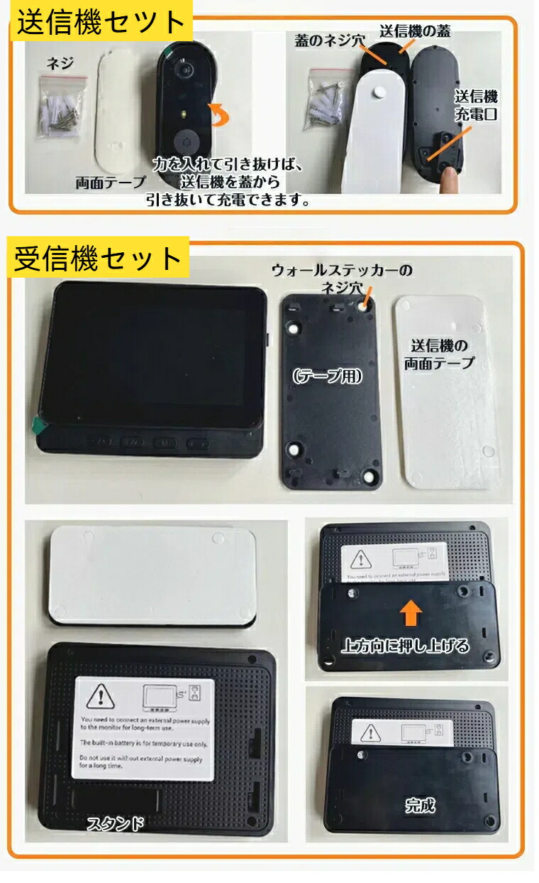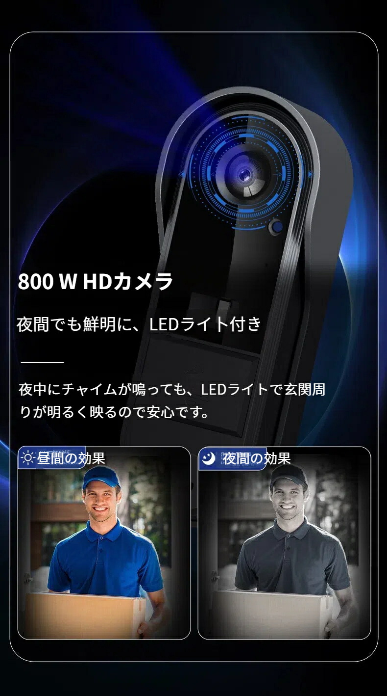 インターホン ワイヤレス 配線不要 双方向会話 取り付け 防水 通話 自分で ドアベル アプリ不要 USB充電式 高画質 自動録画 簡単操作 女性 防犯 暗視機能