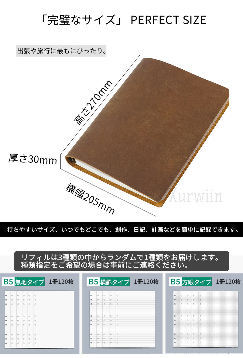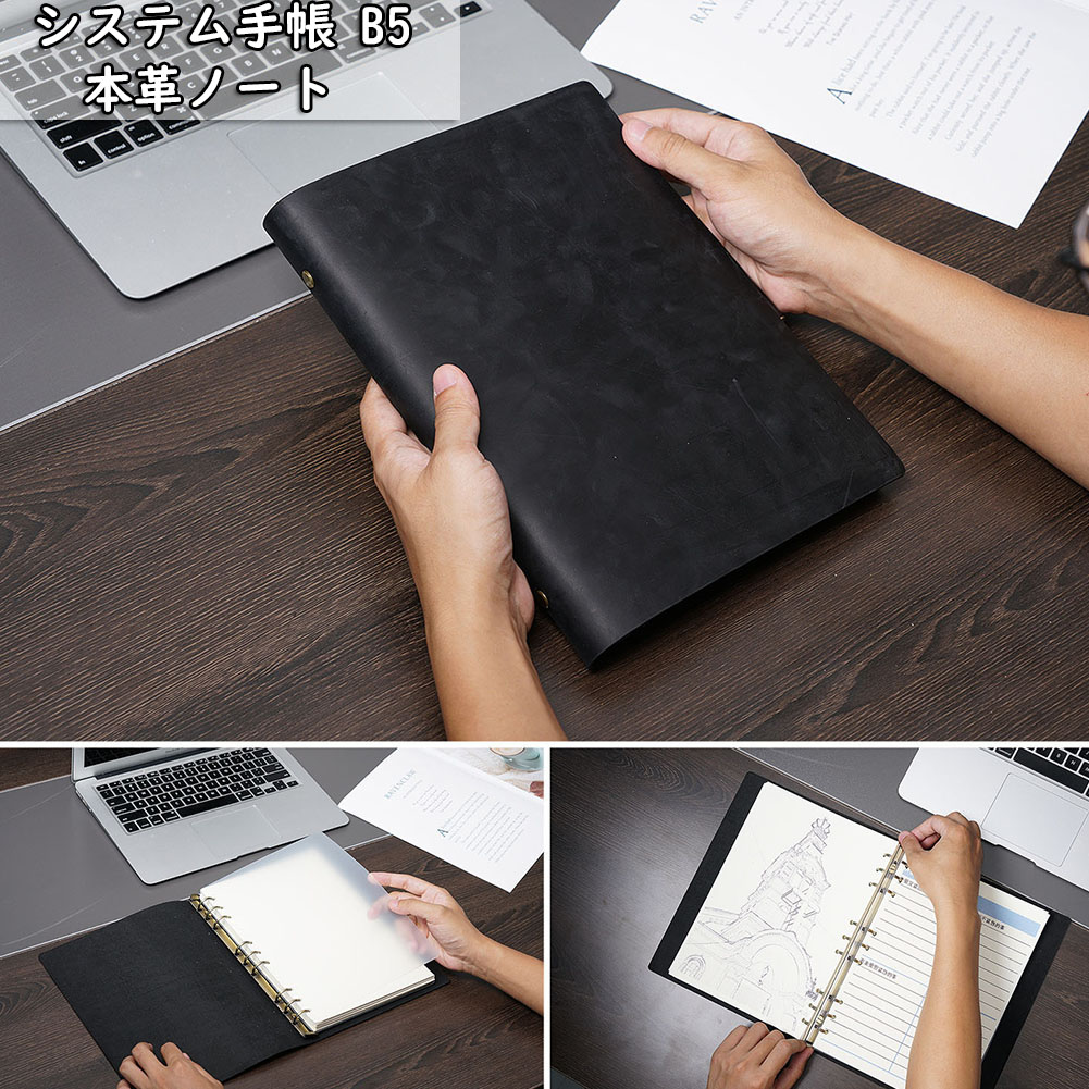 システム手帳 B5 手帳 バインダー ブラック コーヒー ブラウン ブルー グリーン レッド A B C