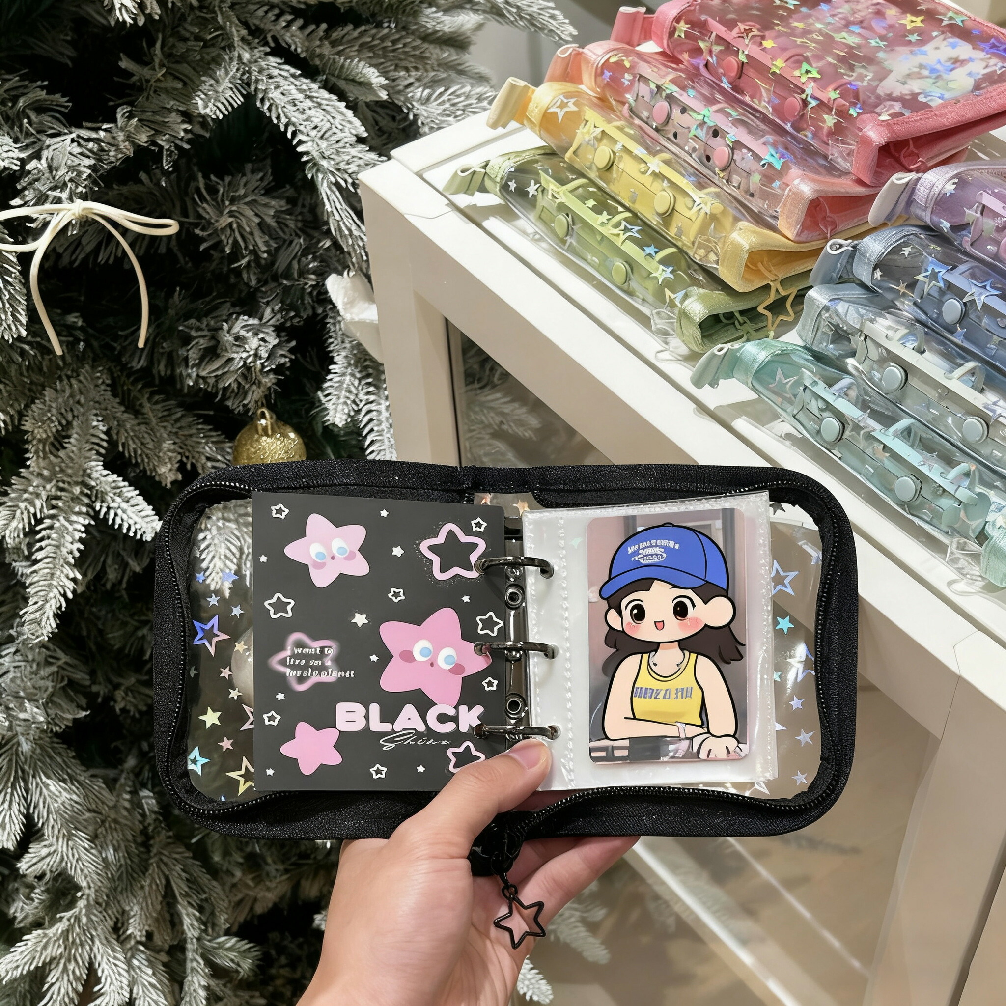 手帳 星柄リング付き ins バインダ 文房具 事務用品 手帳 ノート 手帳 続々登場 ブラック ホワイト ピンクA パープル グリーンA グリーンB ブルーA ブルーB ピンクB イエロー