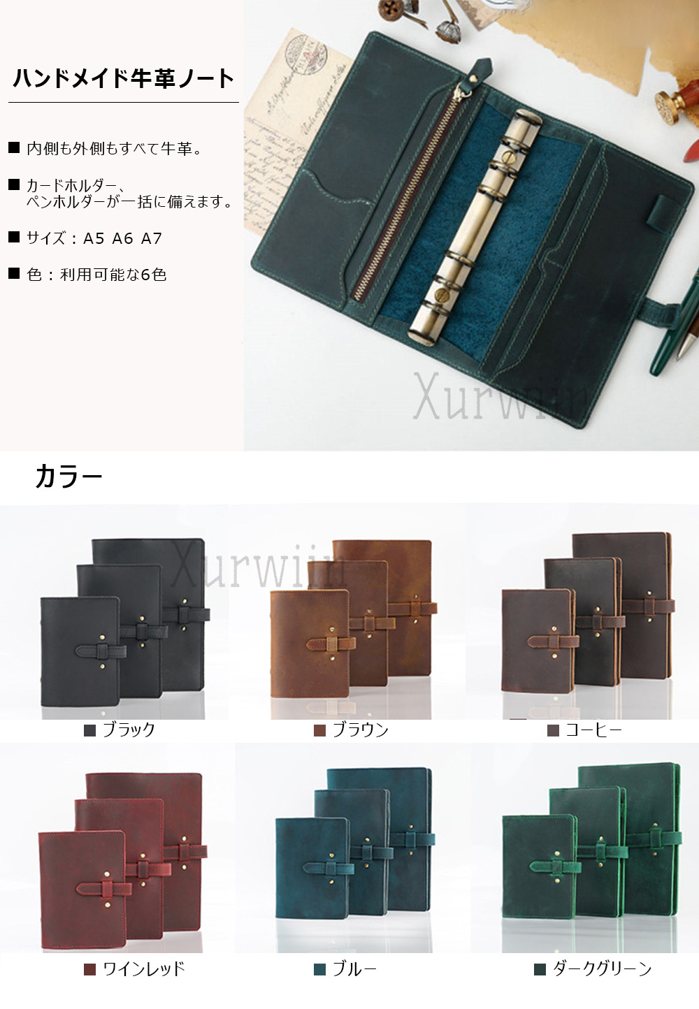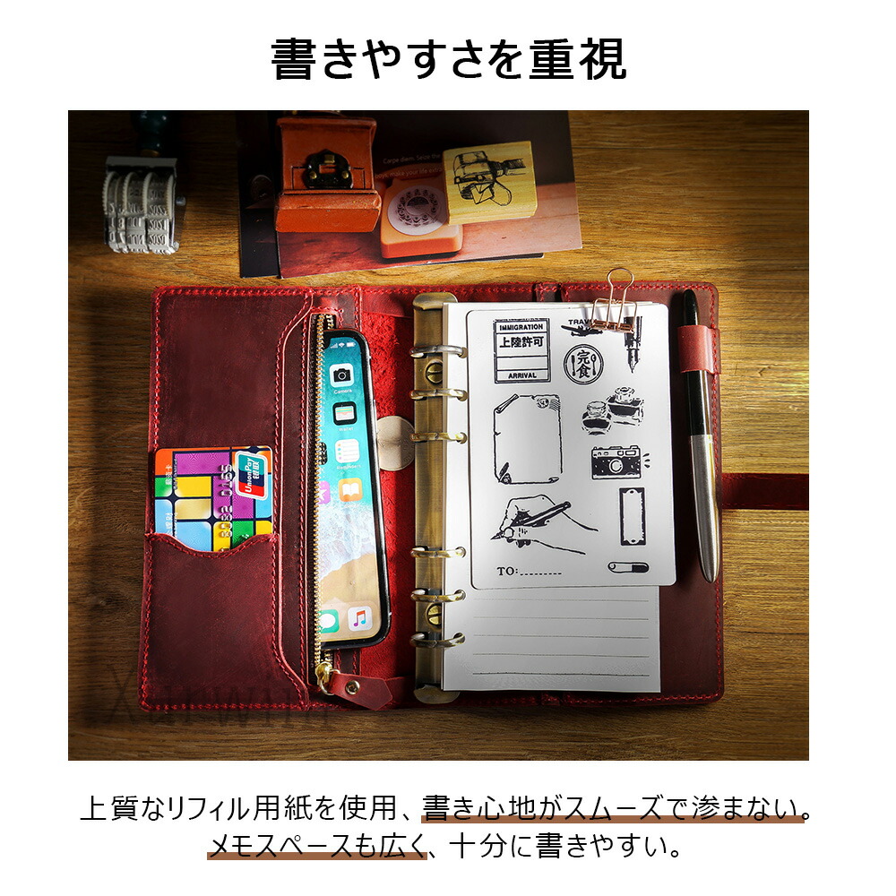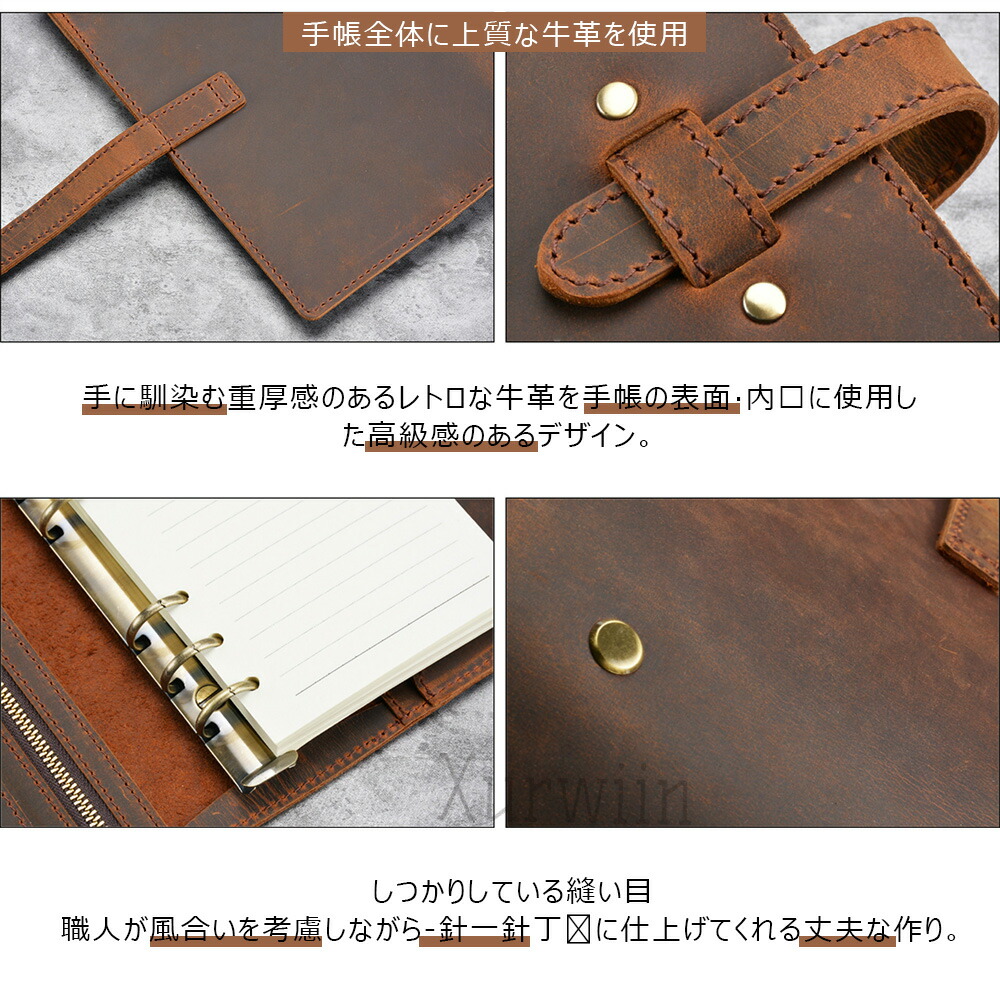 手帳 ノート メモ帳 システム手帳 A ブラウン ブラック グリーン コーヒー レッド ブルー A5 A6