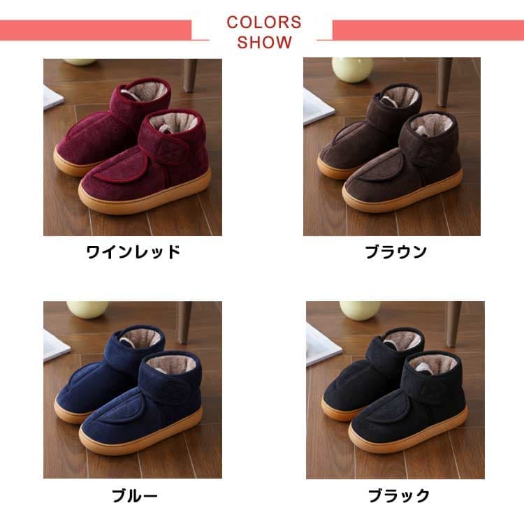 足首まであったか 裏ボア 介護シューズ レディース靴 ブーツ ムートンブーツ 新作 ワインレッド ブラウン ブルー ブラック 37-38 39-40 41-42 43-44 45-46 47-48