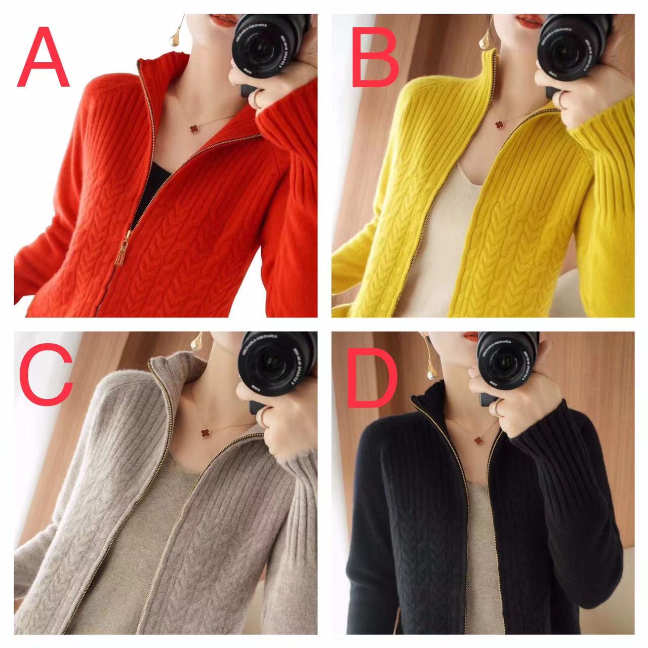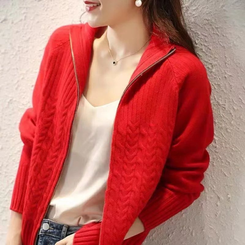 ジップアップ カーディガン 長袖 秋冬 レディースファッション 新作 レッド イエロー ベージュ ブラック S M L XL 2XL 3XL