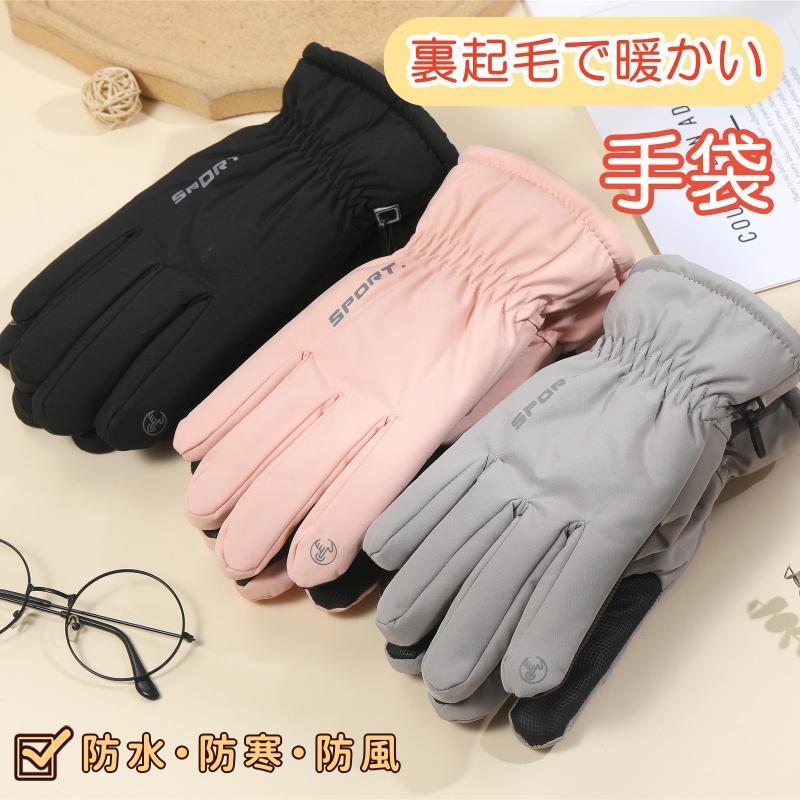 暖かい 防風 手袋 スキー グローブ ブラック ネイビー ピンク グレー ベージュ メンズ レディース