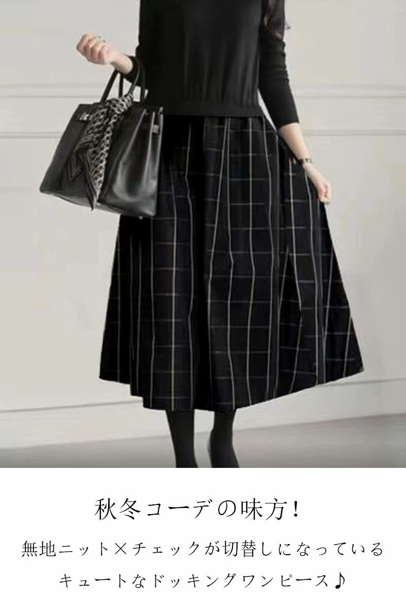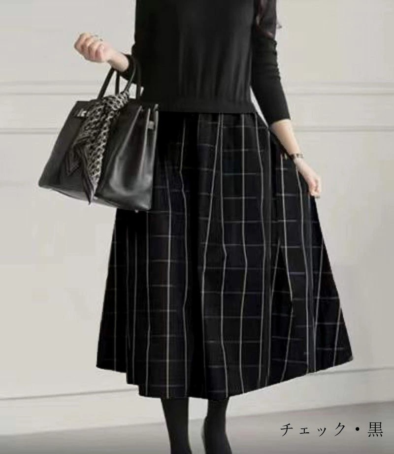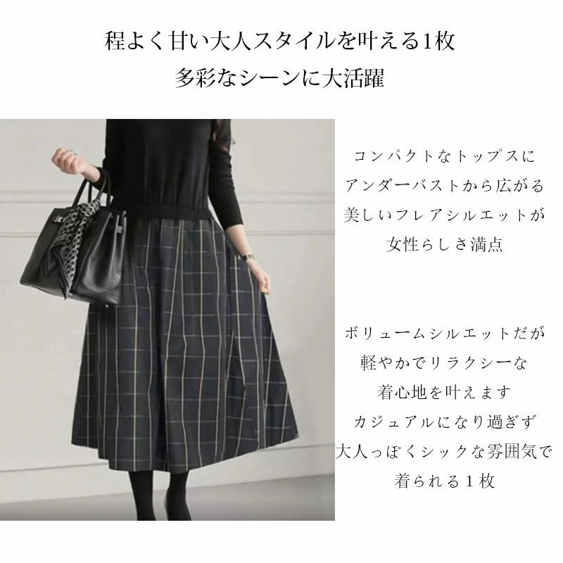 ワンピース きれいめ ロングワンピース ワンピース 新登場! 無地・黒 チェック・グレー チェック・黒 無地・杏色 杏色