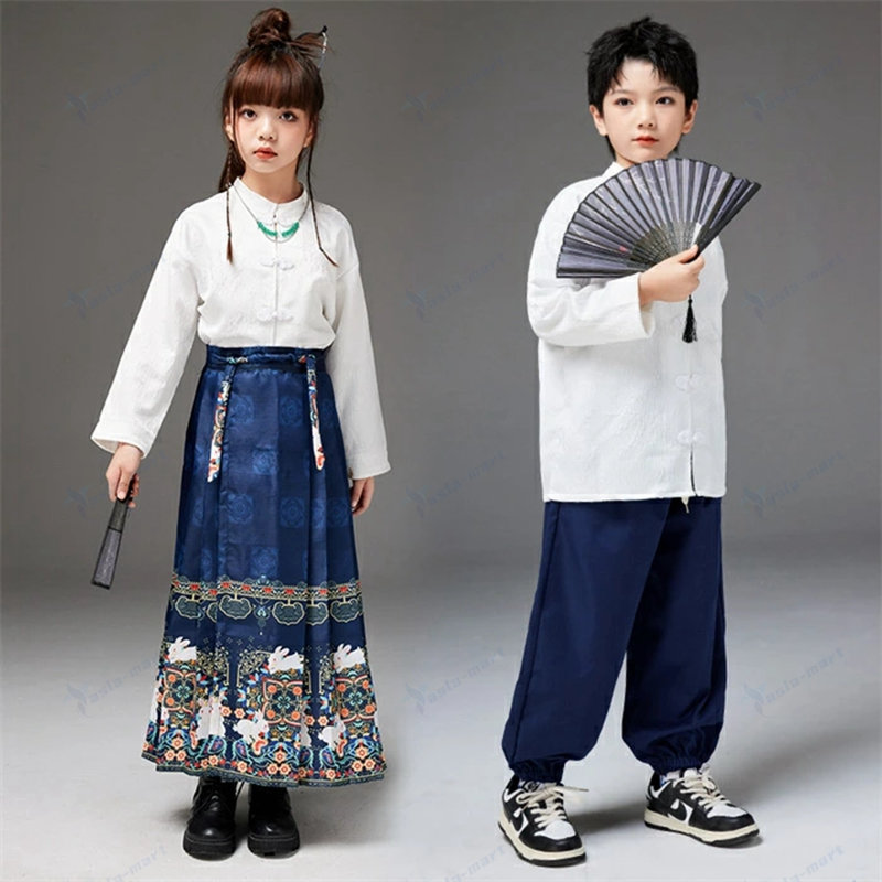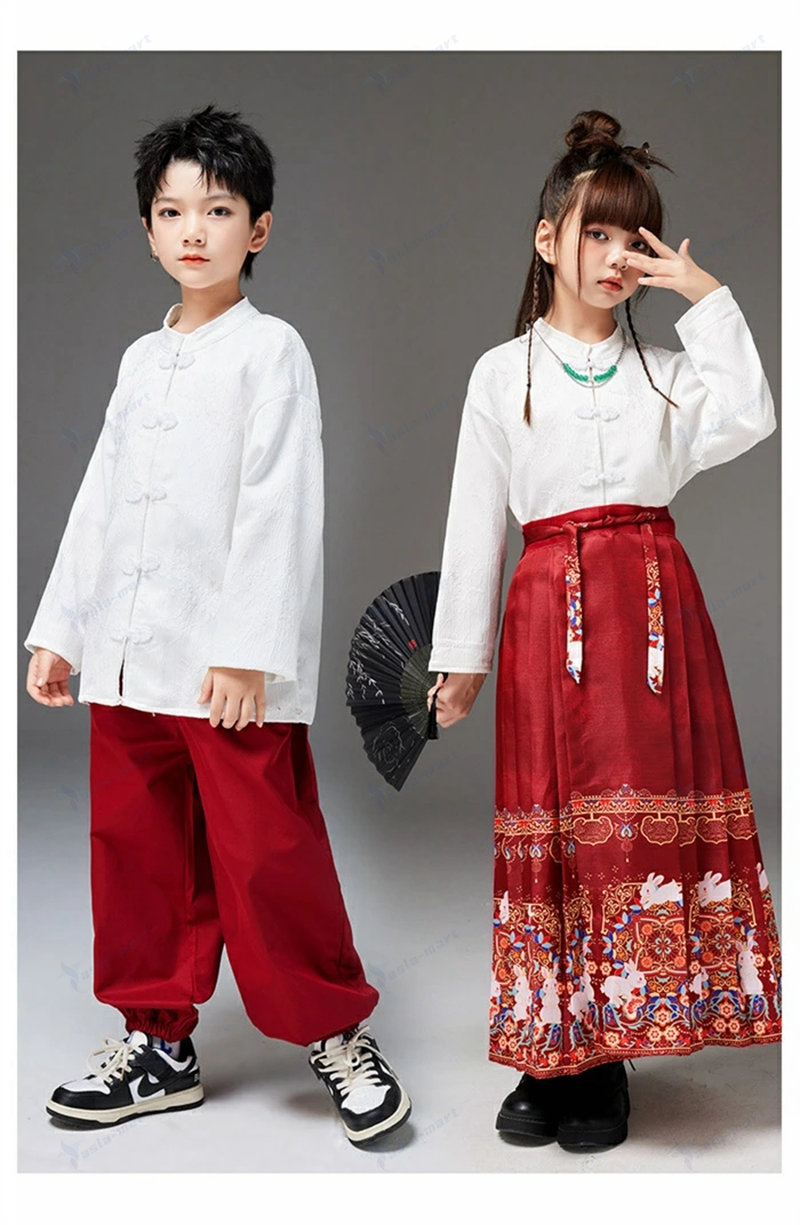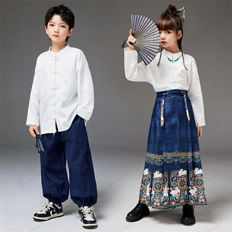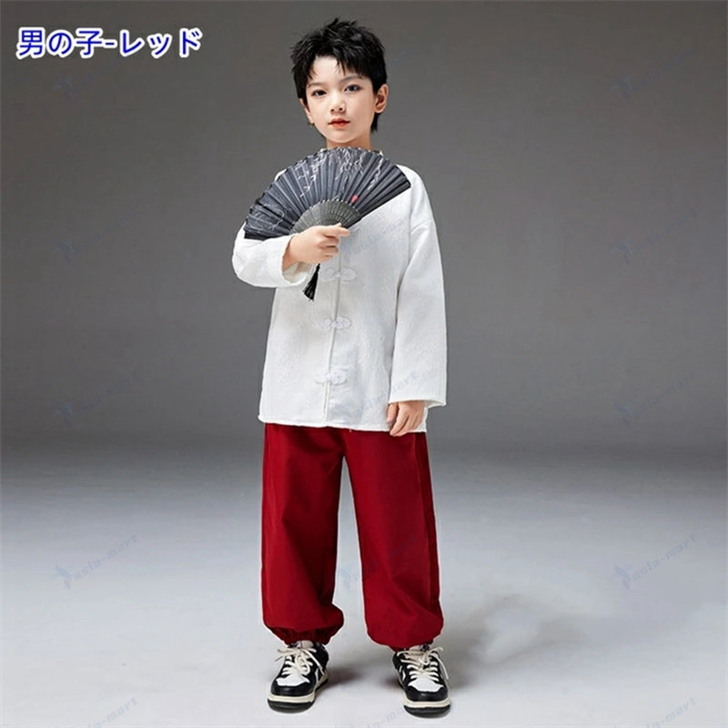 キッズ ダンス衣装 唐装漢服 チャイナ キッズ スーツ カジュアルセットアップ カジュアルスカートセット 新作 女の子-レッド 女の子-ブルー 男の子-レッド 男の子-ブルー 110cm 120cm 130cm 140cm 150cm 160cm 170cm 180cm