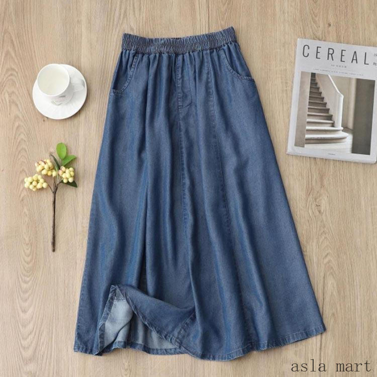 デニムスカート 膝丈 スカート ロング ボトムス スカート 人気 ライトブルー ダークブルー M L XL 2XL 3XL
