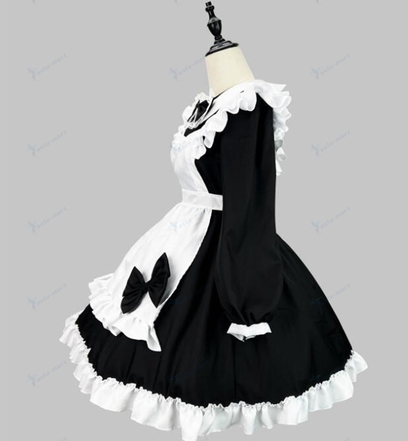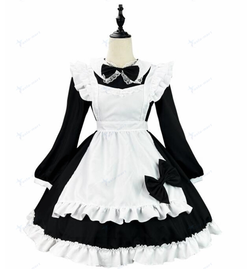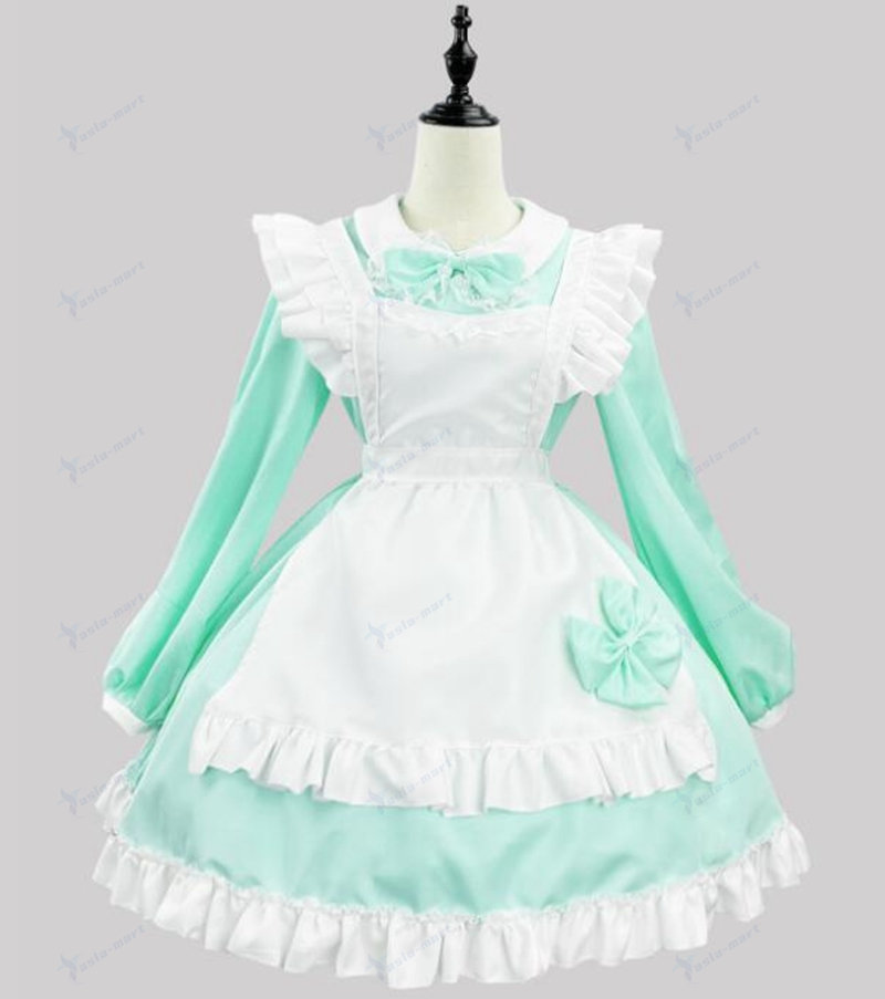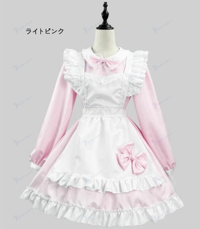 メイド服 ワンピース7色 ロリータ ワンピース長袖ワンピース エプロンショート丈 ミニ丈 ワンピース lolita 可愛い 裾フリル リボン ウェイトレス 女装 大 エプロンドレス