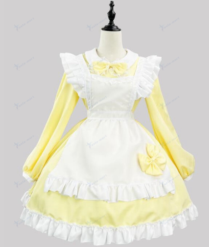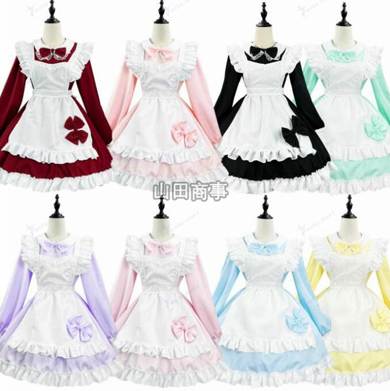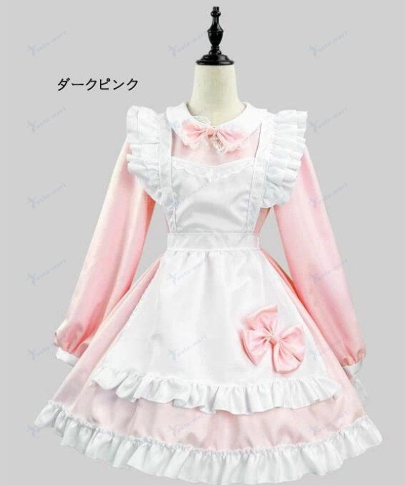 メイド服 ワンピース7色 ロリータ ワ コスプレ 変装 仮装 コスチューム一式 続々登場 黒 ワイン ダークピンク ライトピンク イエロー グリーン パープル S M L XL 2XL 3XL 4XL 5XL