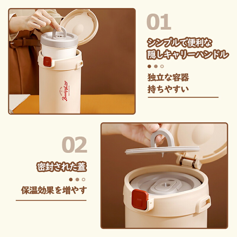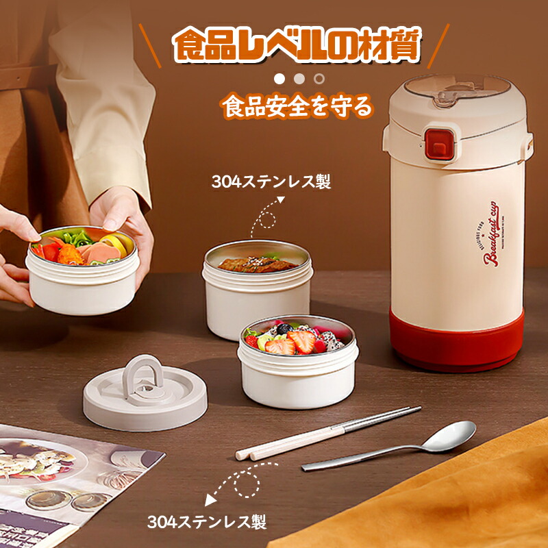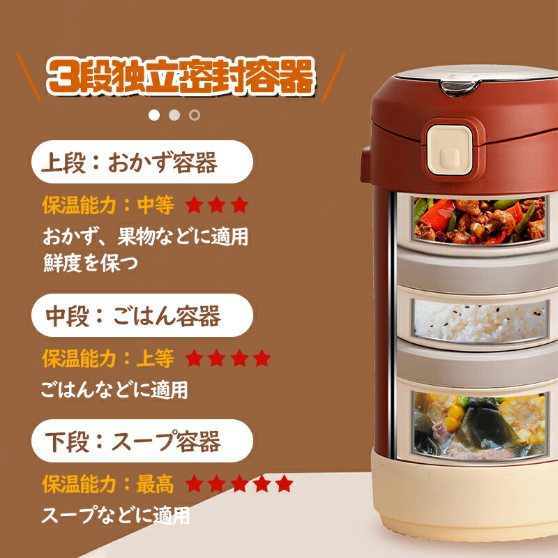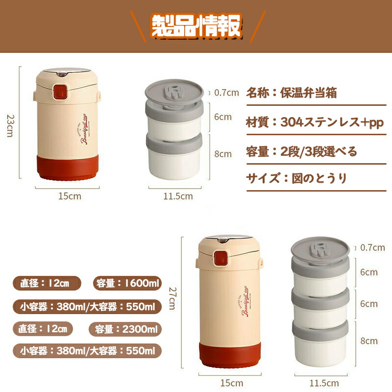 保温弁当箱 弁当箱 大容量 軽量 2段 キッチン用品 食器 調理器具 特集 ホワイト レッド 1800ml(2段) 2300ml(3段)