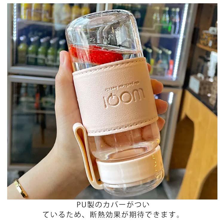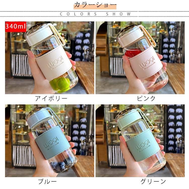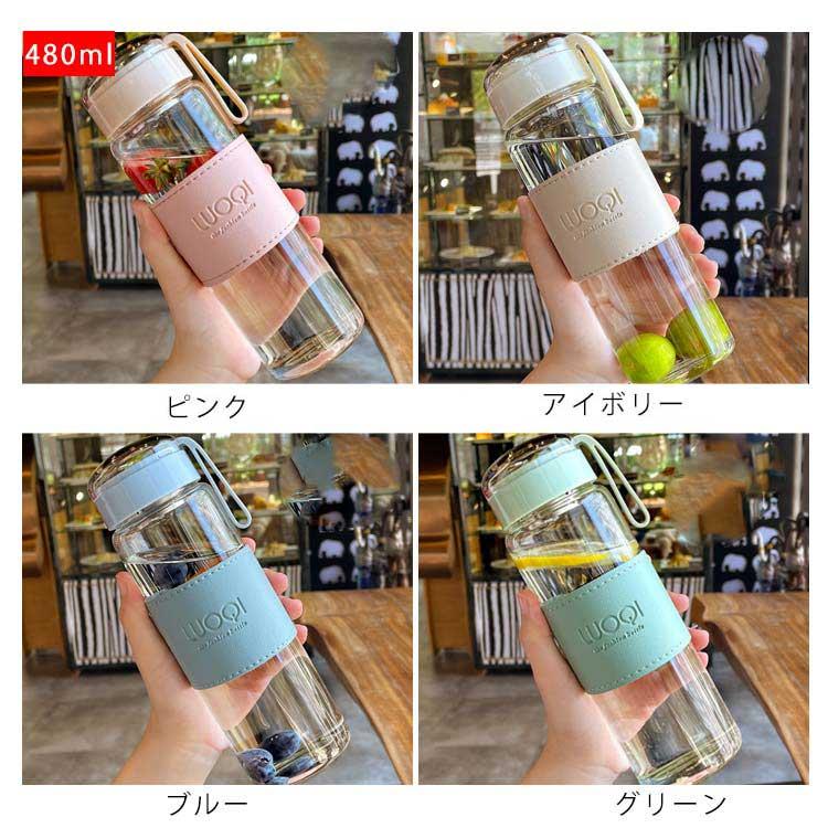 ウォーターボトル ガラス 水筒 透明 キッチン用品 食器 調理器具 特集 アイボリー ピンク グリーン ブルー 340ml(フィルターなし) 480ml(フィルター付き)
