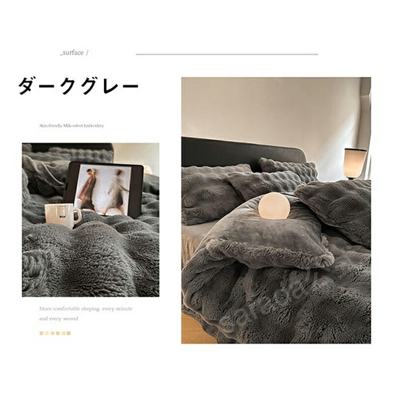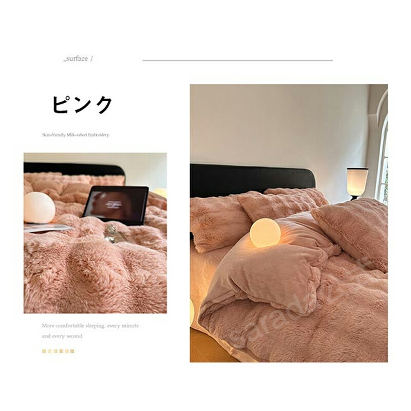 もこもこ 布団カバーセット 3点セット 4点セット シングル ダブル ワイドダブル ラビットファー調 掛け布団カバー ベッドシーツ 枕カバー ふわふわ フェイクファー あったか 保温 防寒 フランネル
