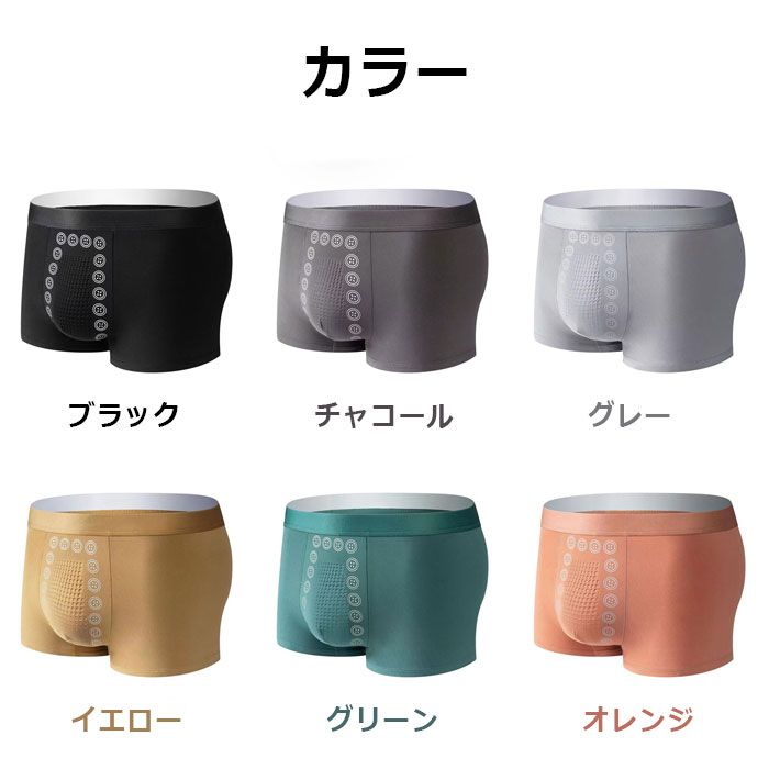磁気パンツ 蒸れない 立体成型 パンツ メンズ インナー 下着 ボクサーパンツ 人気 ブラック*3 チャコール*3 グレー*3 イエロー*3 グリーン*3 オレンジ*3 ブラック+チャコール+グレー イエロー+グリーン+オレンジ ブラック+グレー+イエロー チャコール+グレー+イエロー グレー+イエロー+グリーン L(目安体重:40-50kg) XL(目安体重:50-60kg) 2XL(目安体重:60-70kg) 3XL(目安体重:70-80kg) 4XL(目安体重:80-90kg)