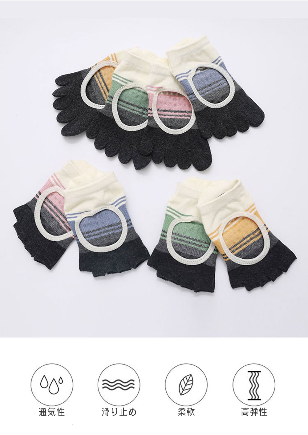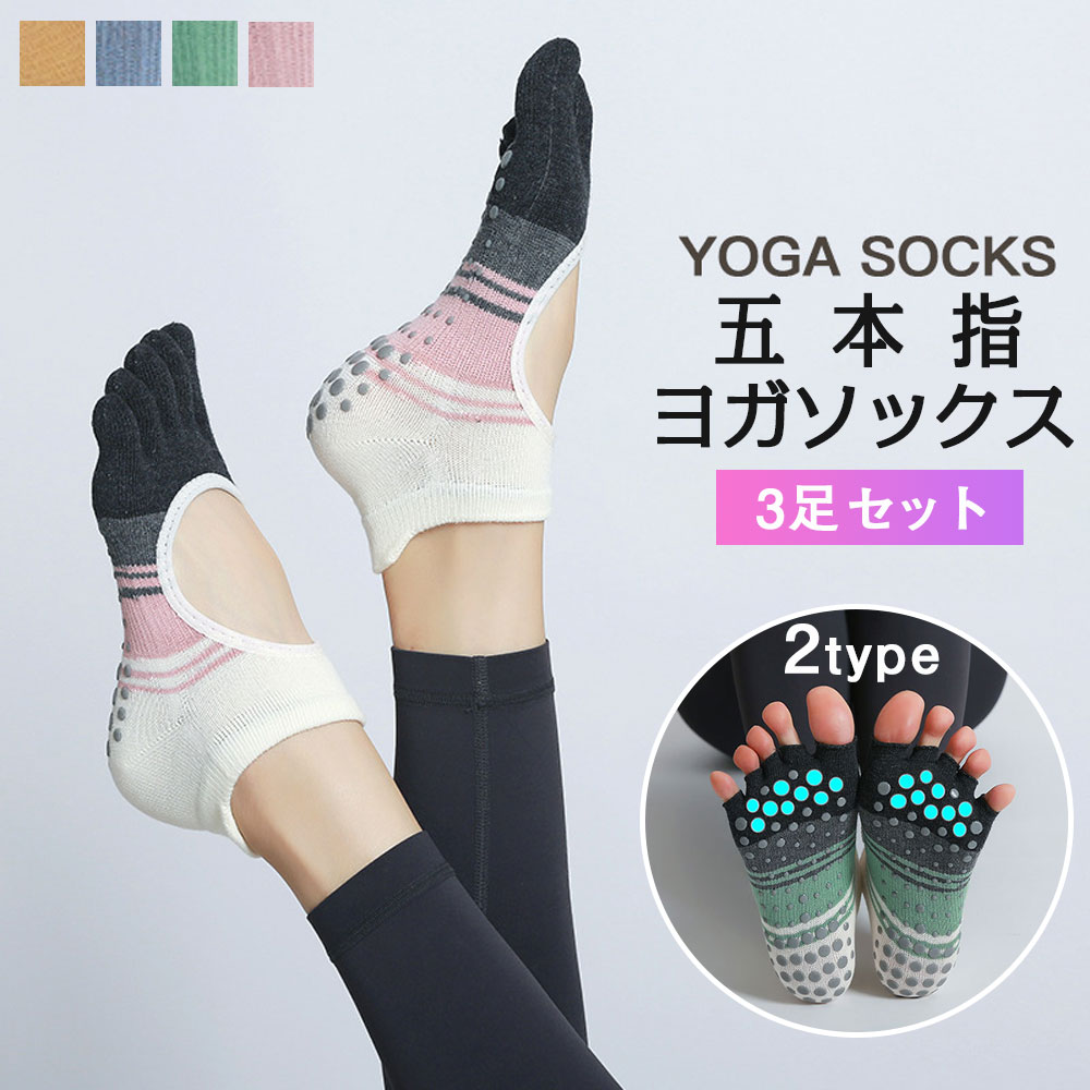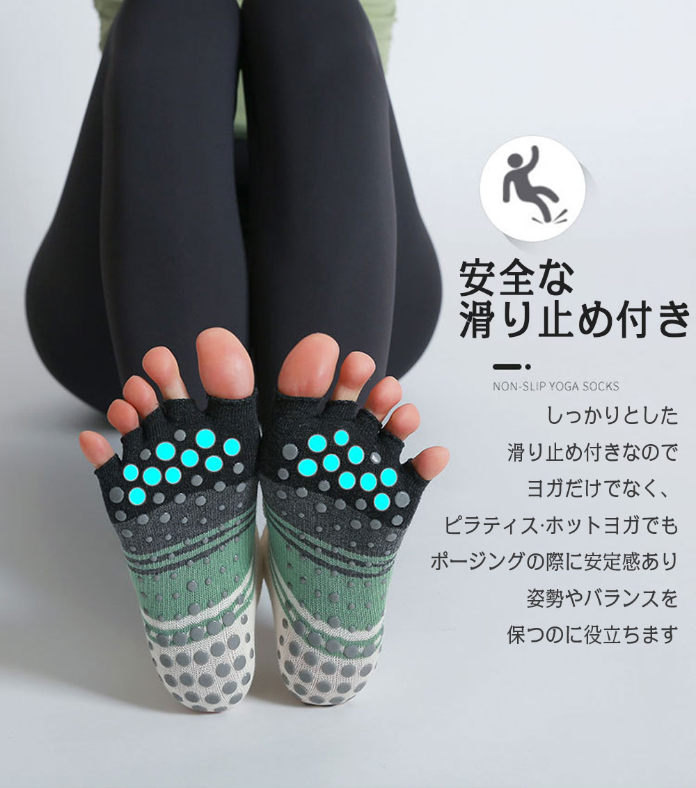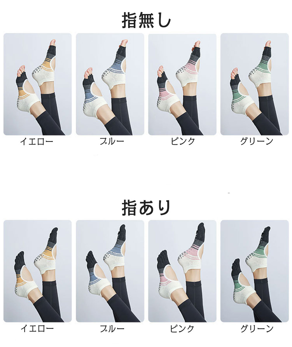 ヨガ ソックス 5本指 靴下 滑り止め イエロー(指無し) ブルー(指無し) ピンク(指無し) グリーン(指無し) イエロー(指あり) ブルー(指あり) ピンク(指あり) グリーン(指あり)