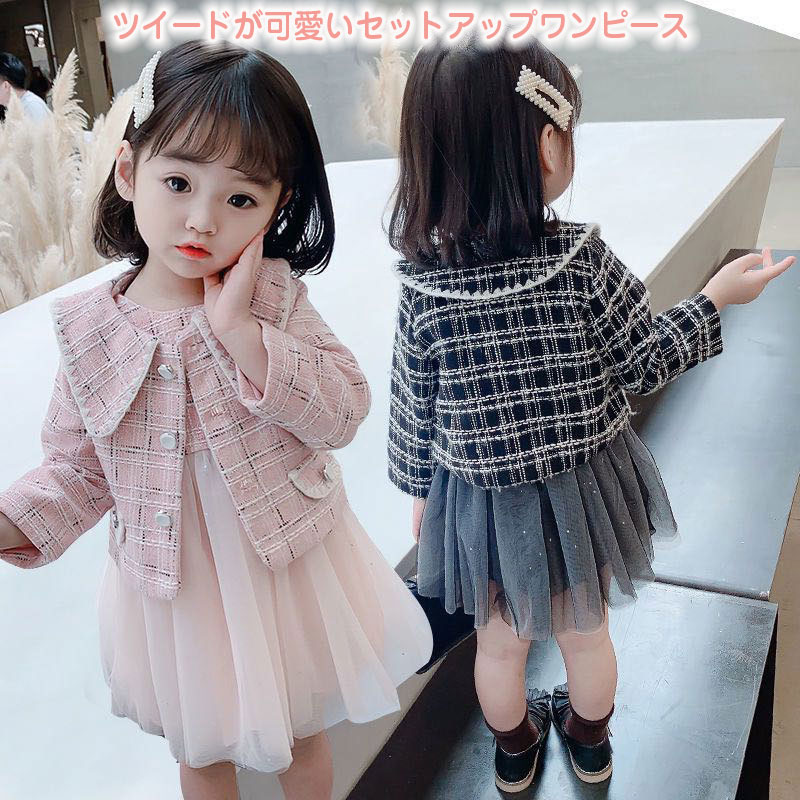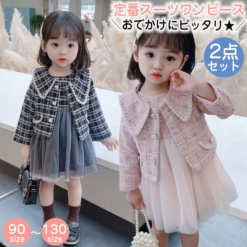 スーツ 女の子 子供服 ワンピース 2 キッズ スーツ カジュアルセットアップ カジュアルスカートセット 続々入荷中 ピンク ブラック 90cm 100cm 110cm 120cm 130cm