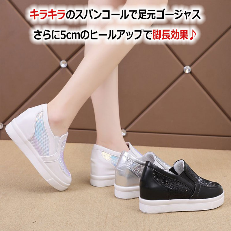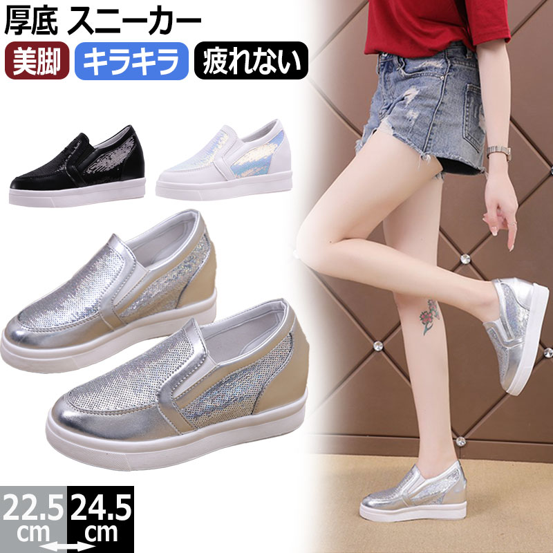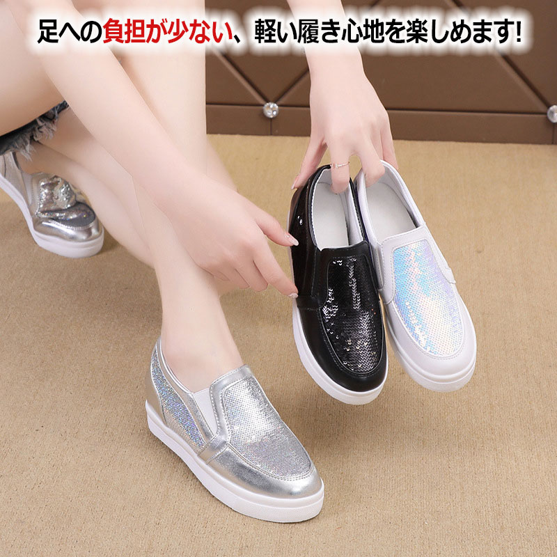 スニーカー スリッポン レディース キ レディース靴 スニーカー 特集 ブラック ホワイト 銀色 35(内寸22.5cm) 36(内寸23cm) 37(内寸23.5cm) 38(内寸24cm) 39(内寸24.5cm)