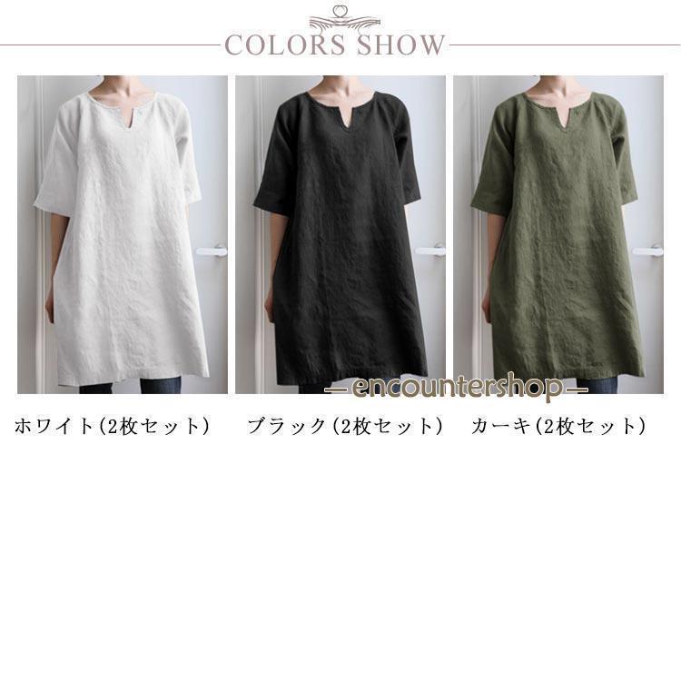 2枚セット ロングブラウス チュニック トップス シャツ ブラウス 新登場! ホワイト(2枚セット) ブラック(2枚セット) カーキ(2枚セット) M L XL 2XL 3XL 4XL 5XL