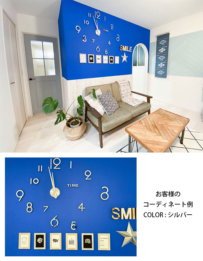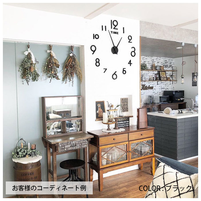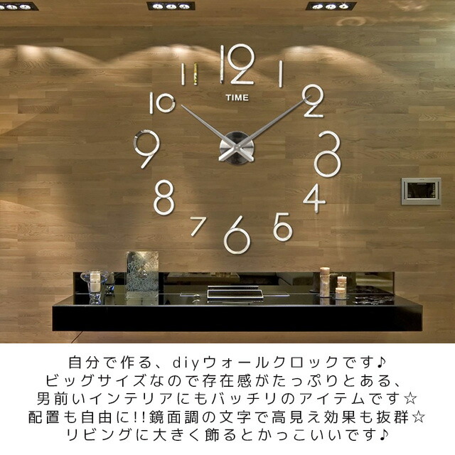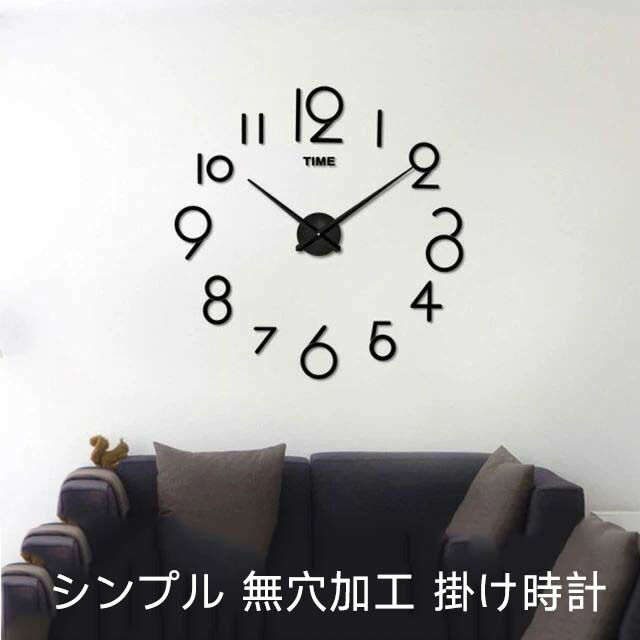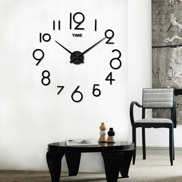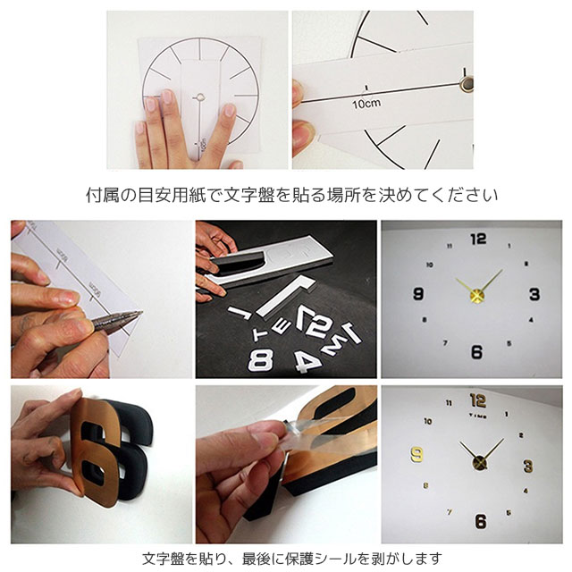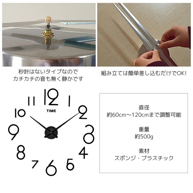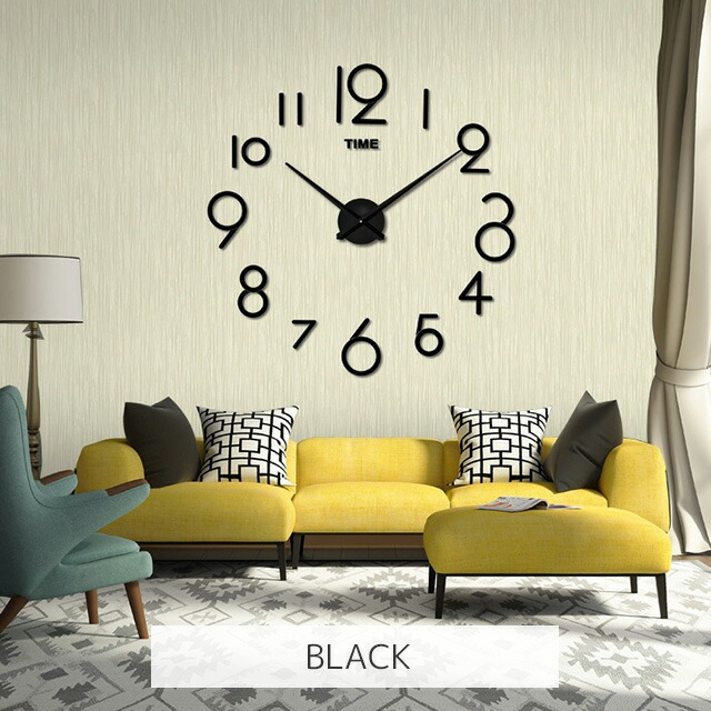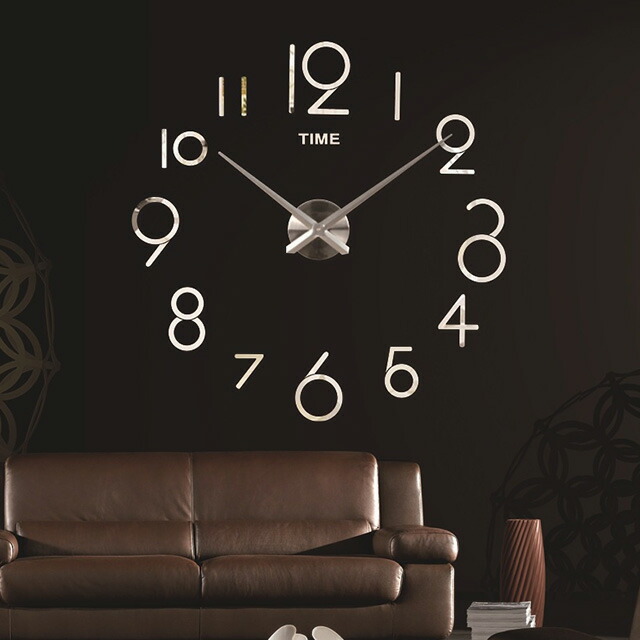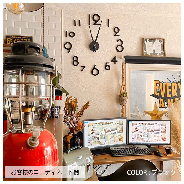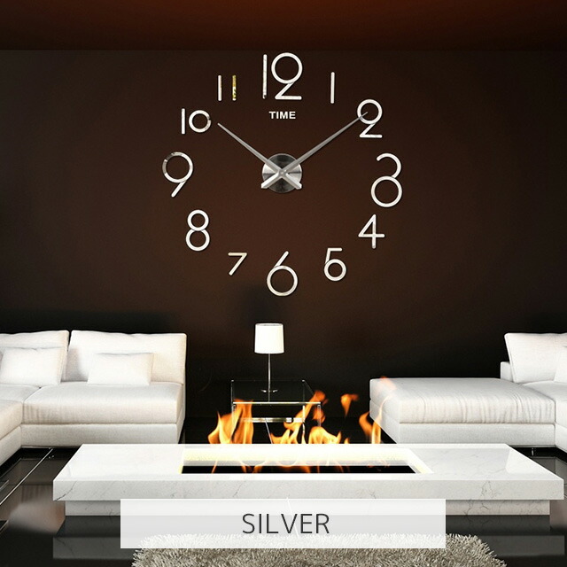 DIY ウォールクロック 壁に貼れる ブラック シルバー