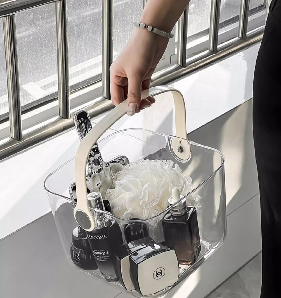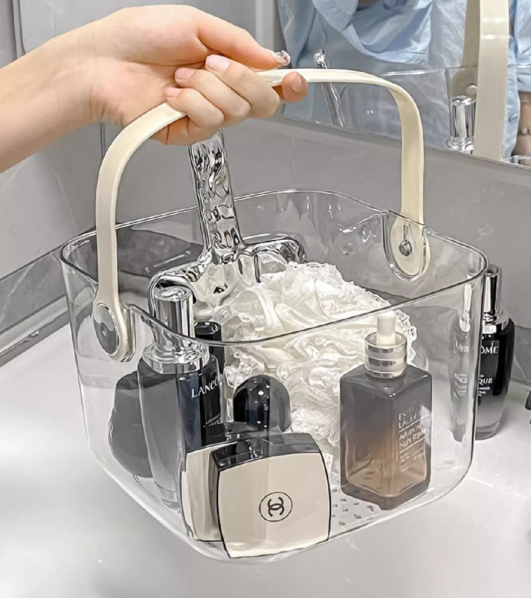 お風呂バスケット カゴ かご 小物入れ オフホワイト クリア ブラック