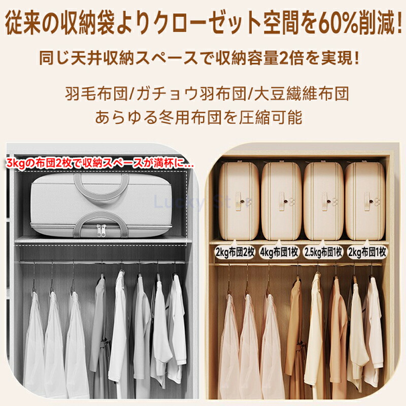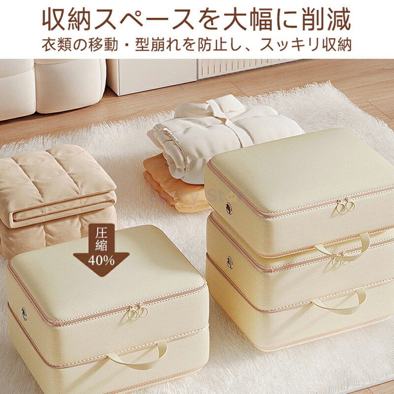 ポンプ不要 圧縮収納袋 衣類 収納袋 ベージュ ピンク グレー M(1枚) M(2枚) M(5枚) L(1枚) L(2枚) L(5枚)