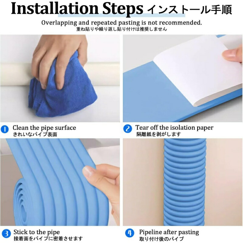 水道用ラップテープ パイプ断熱テープラ ベージュ イエロー グレー ピンク ミント ブルー 2m 4m 8m 16m