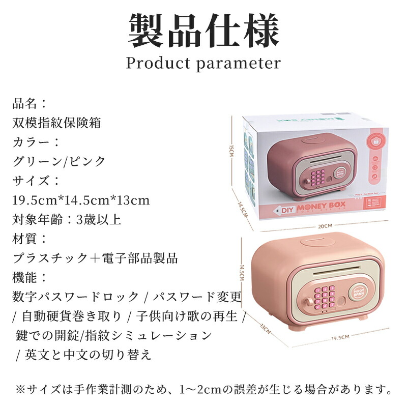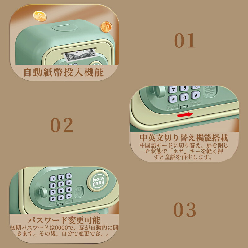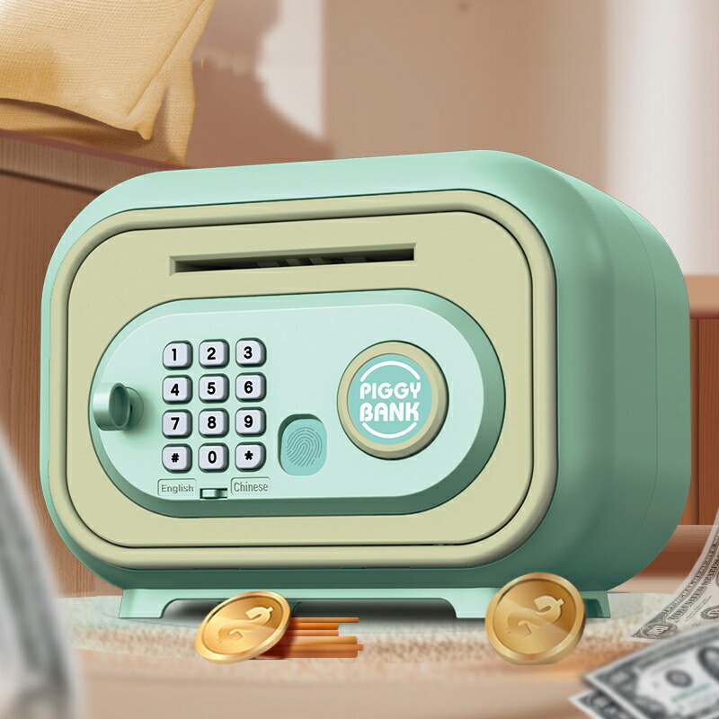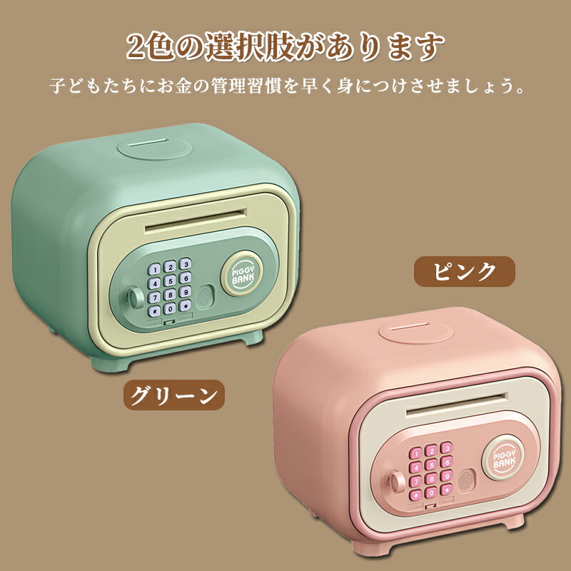 貯金箱 子供用貯金箱 かわいい 金庫型 グリーン ピンク