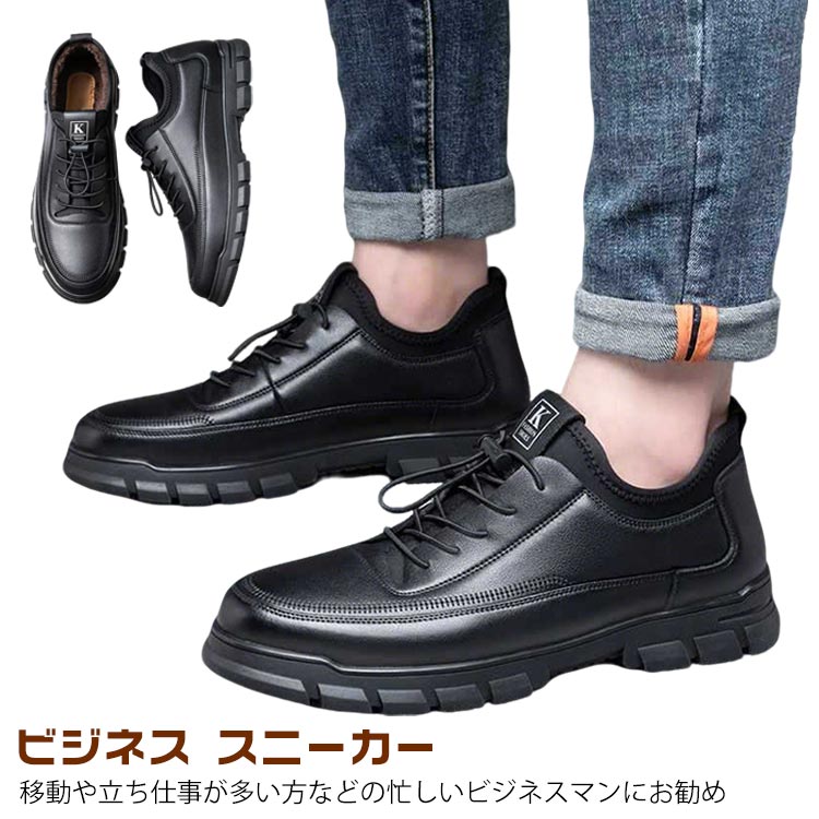 柔らかい 通勤 黒 革靴風スニーカー 靴 豊富 39(24.5cm) 40(25cm) 41(25.5cm) 42(26cm) 43(26.5cm) 44(27cm)