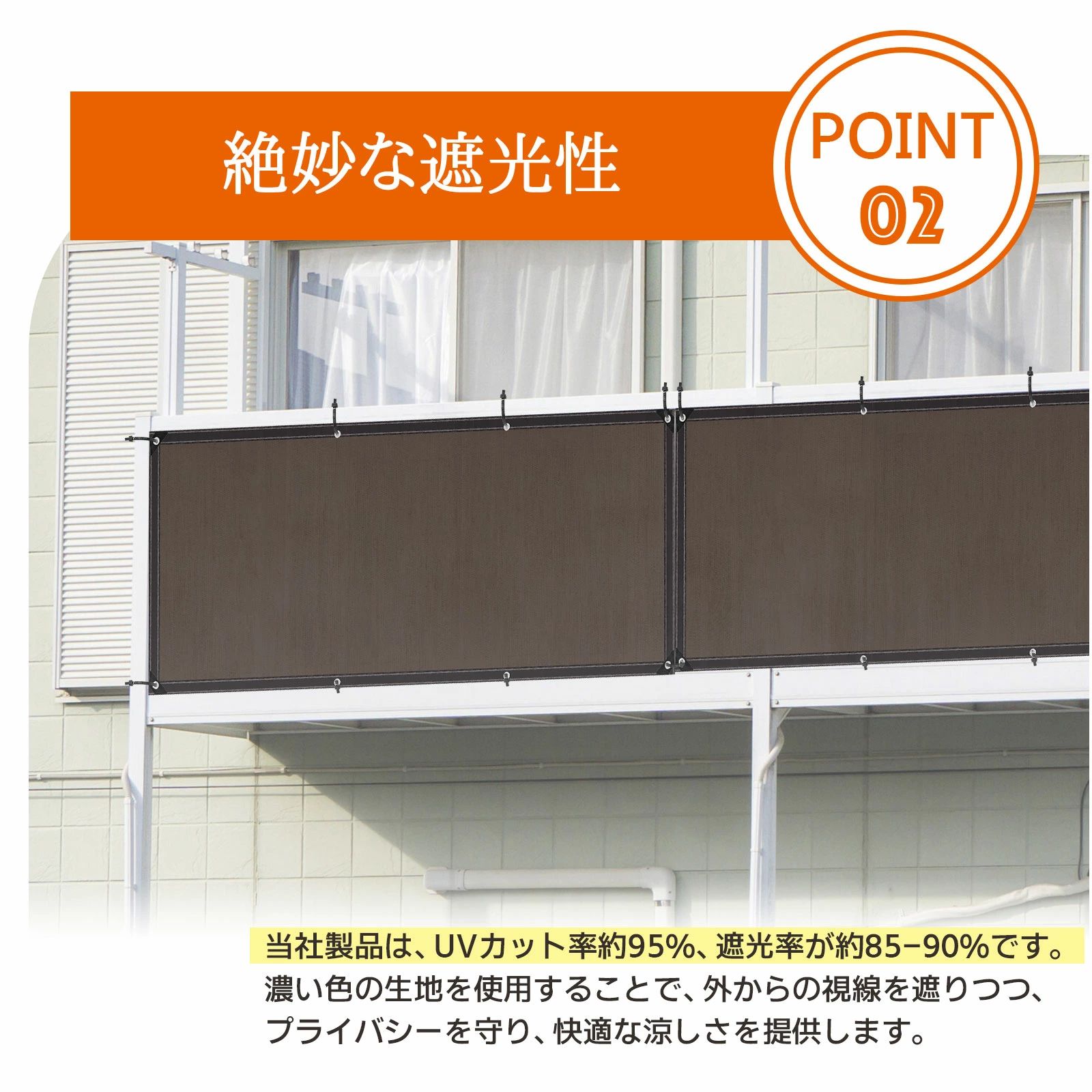 バルコニーシェードは、まるであなたのプライバシーを守る忍者のように、ベランダやバルコニーに最適です。豊富なサイズ展開で、上部にも前部にも問題なく取り付けられます。カーペットや畳、家具の日焼けを防ぎ、まるで時間を止めたかのように、美しさを保ちます。目隠しや落下防止、ほこりよけなど、まるで千変万化の忍者のように、様々な用途に対応します。バルコニーシェードは、風通しの良い高密度HDPEの生地、絶妙な遮光性、簡単な取り付け、様々な場所への適応、そして付属品の目立たなさなど、まるであなたのベランダに寄り添う忍者のような存在です。このシェードと一緒なら、あなたのベランダは、まるで秘密の隠れ家のように、涼しく快適な空間に変わるでしょう。さあ、このシェードを手に入れて、あなたのベランダを特別な場所に変えてください!
