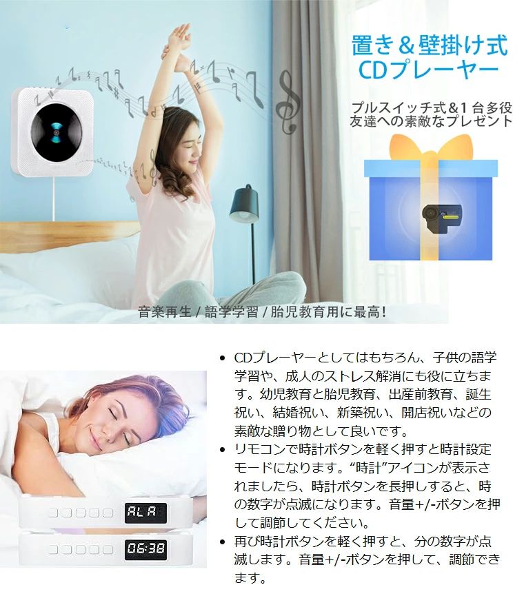 革新型CDプレーヤー 卓上&壁掛け式& ホワイト ブラック