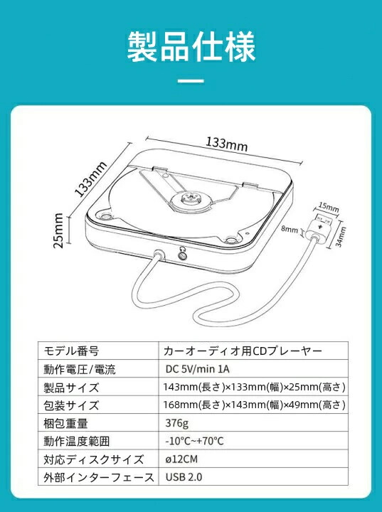 CDプレーヤー カーオーディオ 車載 CD カーオーディオ bluetooth 音楽再生 高音質 ポータブル 持ち運び 音楽 多機能CD/USB/Bluetooth/AUXなどに対応 A-Bリピート再生 CDウォークマン コンパクト 3.5mmオーディオジャック搭載 音楽再生/語 高音質 コンパクト 2025