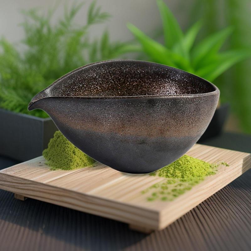 スパウト手作りの抹茶アクセサリーフェア 食器 カトラリー グラス 食器 ご飯茶碗 特集 金メッキ 波模様 黒 茶碗 黄色 陶器の模様