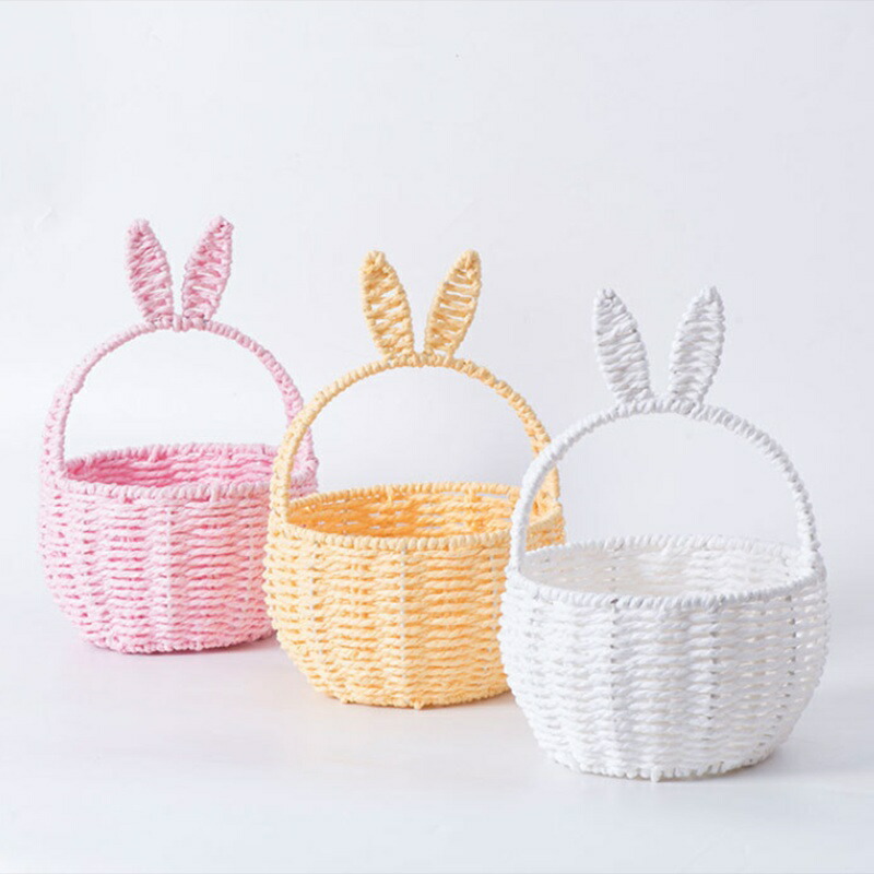 編み込み収納バスケット ハンドバスケッ 寝具 毛布 ブランケット 豊富 ピンク 黄色 白 緑 青